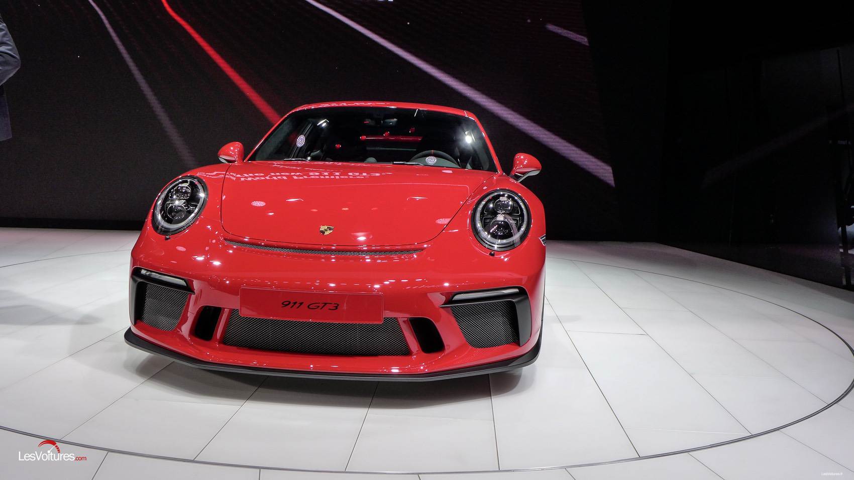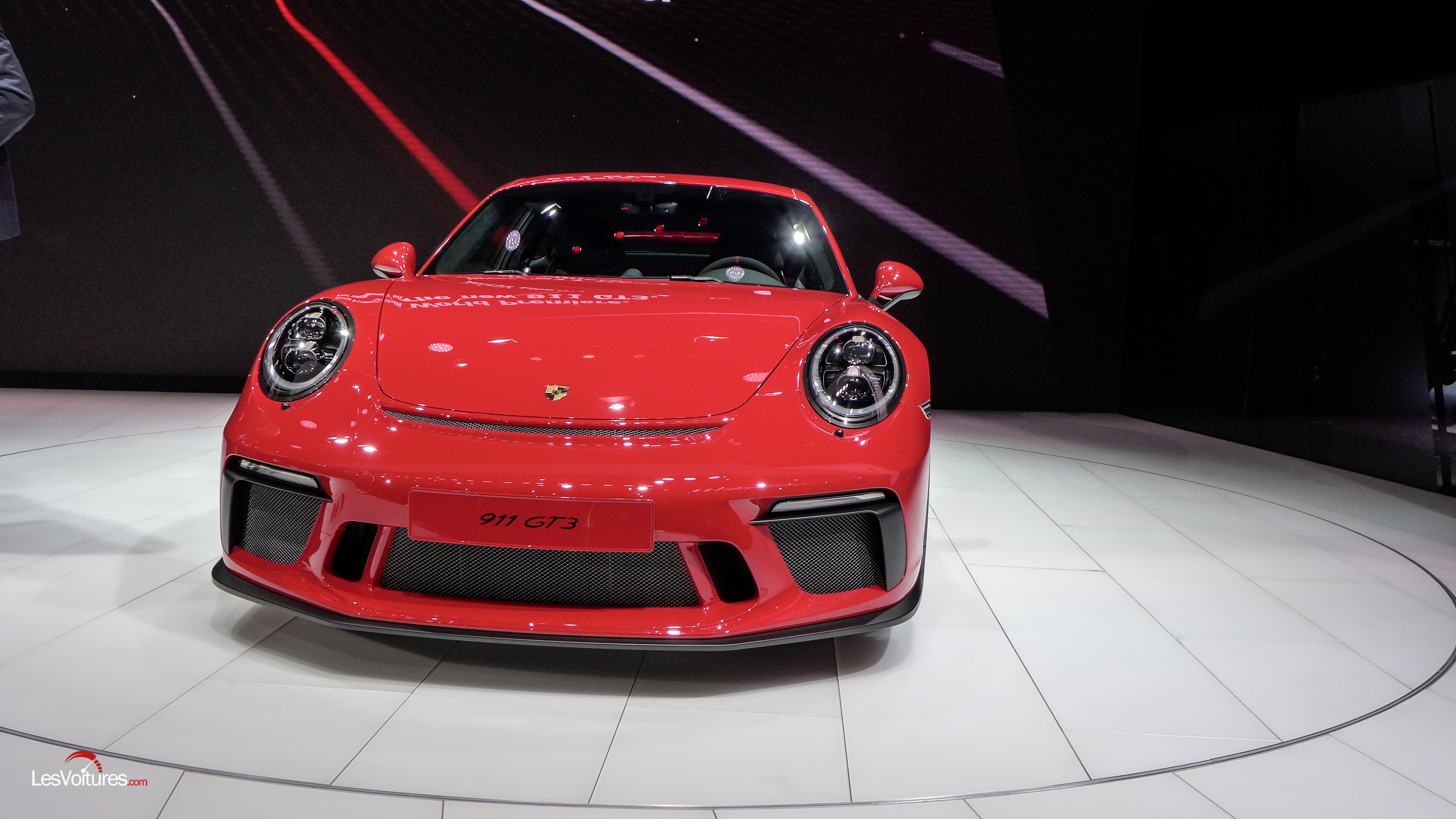 La 911 GT3, d’un poids de 1 430 kilos, dispose de la technologie à quatre roues directrices, d’une suspension abaissée de 25 mm comparativement à la Carrera 4. Visuellement, elle est reconnaissable grâce à ses éléments aérodynamiques spécifiques comme, par exemple, son aileron arrière en carbone. Ce matériau étant repris pour le bouclier avant.