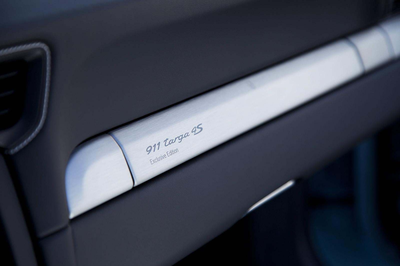 En termes d’équipements, le pack Sport Chrono, un magnifique volant noir en cuir à surpiqûres blanches et le système Porsche Dynamic Chassis Control (PDCC) font leur apparition sur cette belle 911 Targa 4S Exclusive Edition.