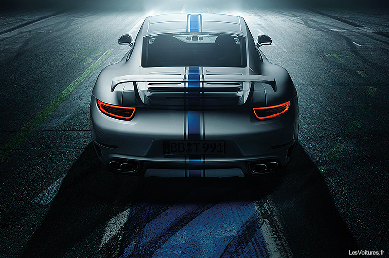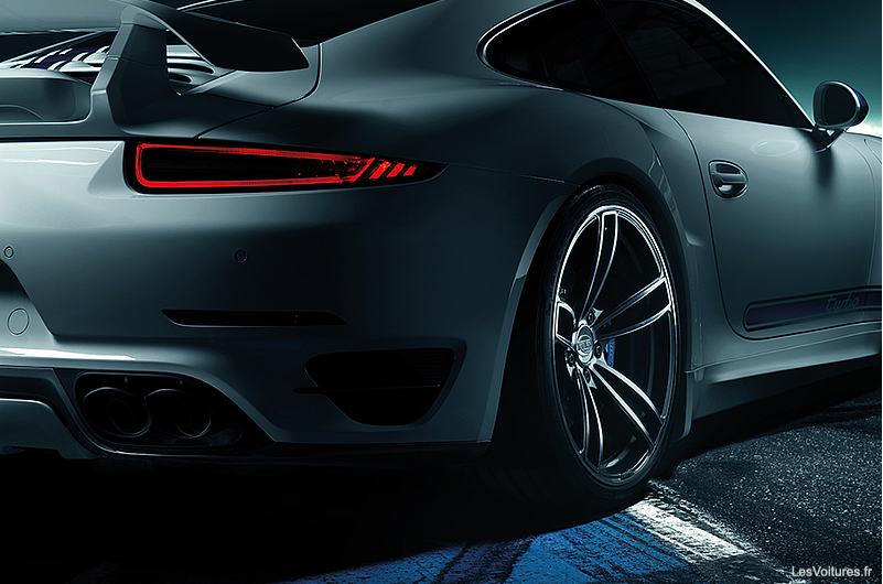 Visuellement et comme à son habitude, le préparateur allemand transforme la 911 Turbo S grâce à un kit carrosserie dont les teintes sont personnalisables et de nouvelles jantes. L’aileron arrière télescopique est remplacé par un aileron fixe très imposant.