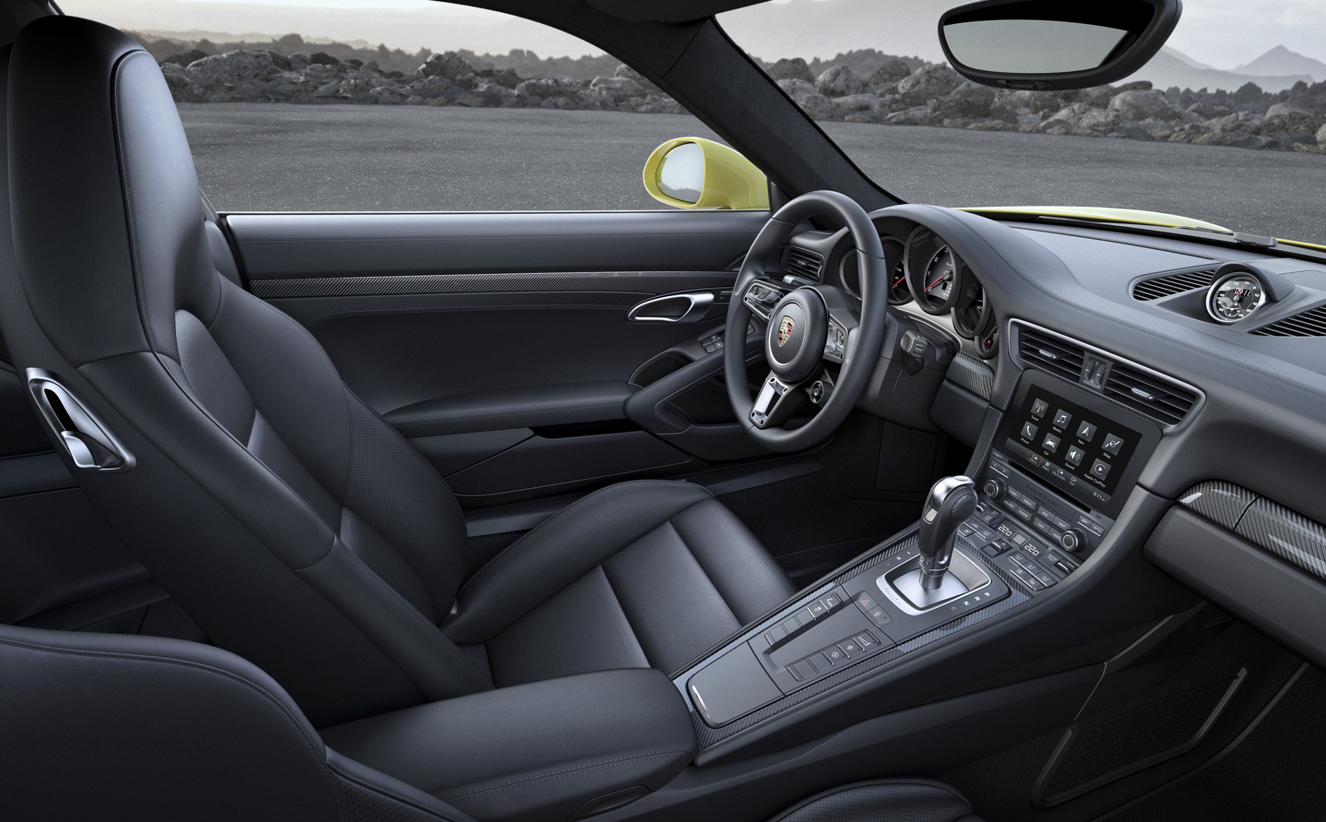 A l’intérieur, le nouveau volant Sport GT, qui est fortement inspiré de la 918 Spyder, saute aux yeux. Son diamètre est de 360 millimètres et il dispose du sélecteur de mode de conduite : Normal, Sport, Sport Plus et Individual. Pour approcher encore de plus près les limites de l’auto sur circuit, le système PSM (Porsche Stability Management) des 911 inclut un tout nouveau mode, le PSM Sport. En appuyant brièvement sur la touche PSM, le dispositif adopte un comportement particulièrement sportif, asservi au programme choisi par le conducteur. A noter également que le système multimédia Porsche Communication Management (PCM) a été revu.