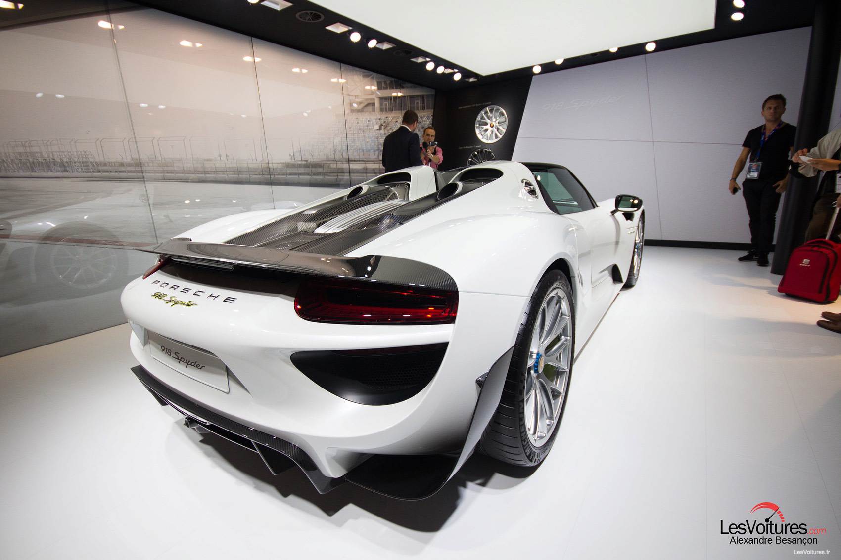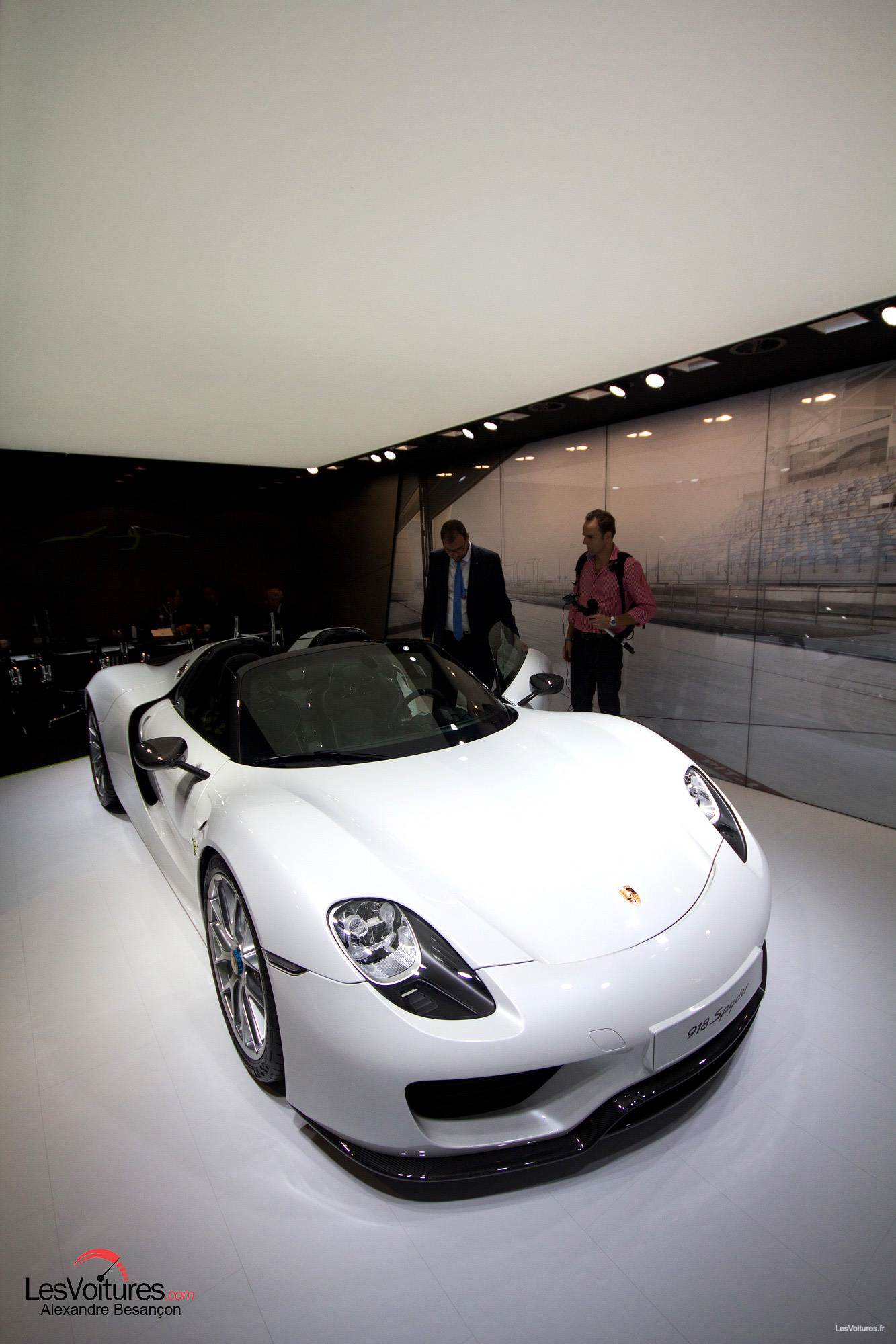 Confinée telle une perle blanche dans un box sur le stand Porsche du Mondial de l’Automobile 2014, la Porsche 918 Spyder arrivera bientôt à la fin de sa production.