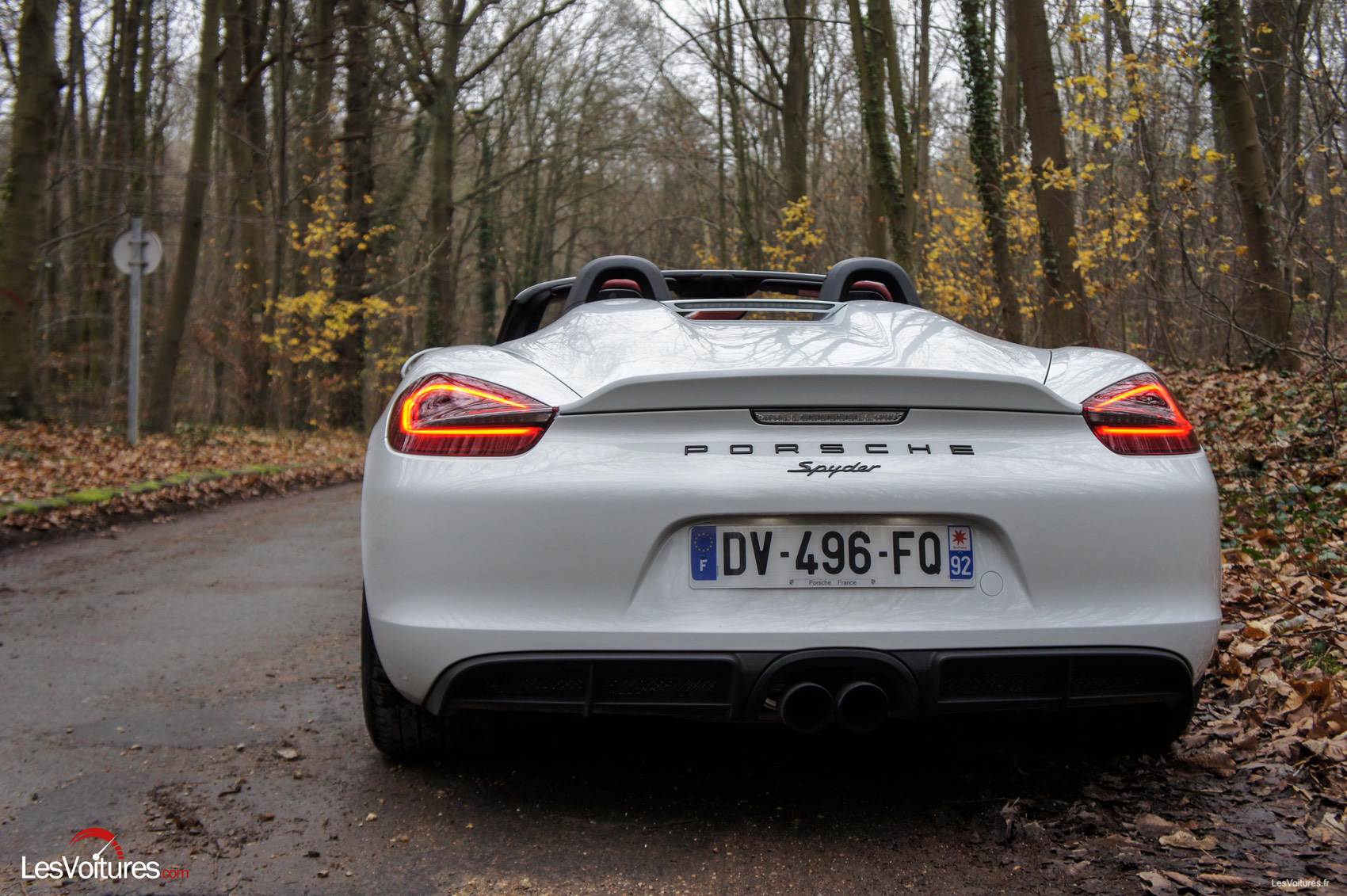 Si nous avions dû jouer la carte du pilote essayeur sensible et raffiné, nous aurions pu passer du temps à détailler une insonorisation très convenable malgré la présence d’une fine capote, ou à vanter le niveau de finition irréprochable finalement légitime lorsque l’on parle d’une Porsche. Or, avec une telle bête entre les mains au look aussi ravageur, faisant directement appel à la grande sœur 918, le cœur de l’essai devait se passer à plein régime sur des routes de campagne. Un cadre parfait où nous pouvions, un court instant, songer aux 290 km/h, vitesse maximale indiquée par le constructeur.