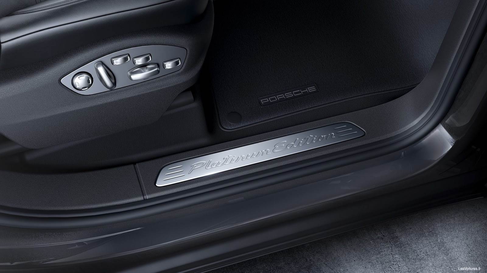 Quant à l’habitacle du SUV très Premium, il bénéficie de sièges sport ajustables en cuir qui intègrent l’écusson Porsche. Ce dernier est situé sur les appuie-têtes. L’inscription « Platinum Edition » est visible sur les seuils de portes et les vitres sont teintées. La direction Power steering plus (direction assistée électromécanique), est aussi proposée d’entrée sur cette édition.