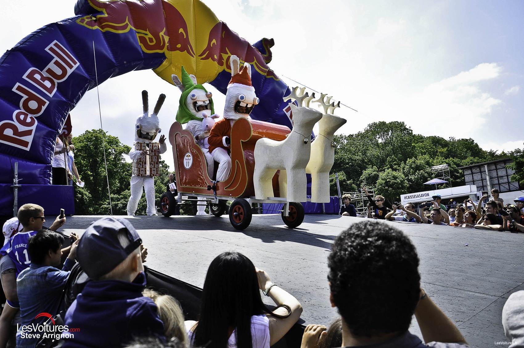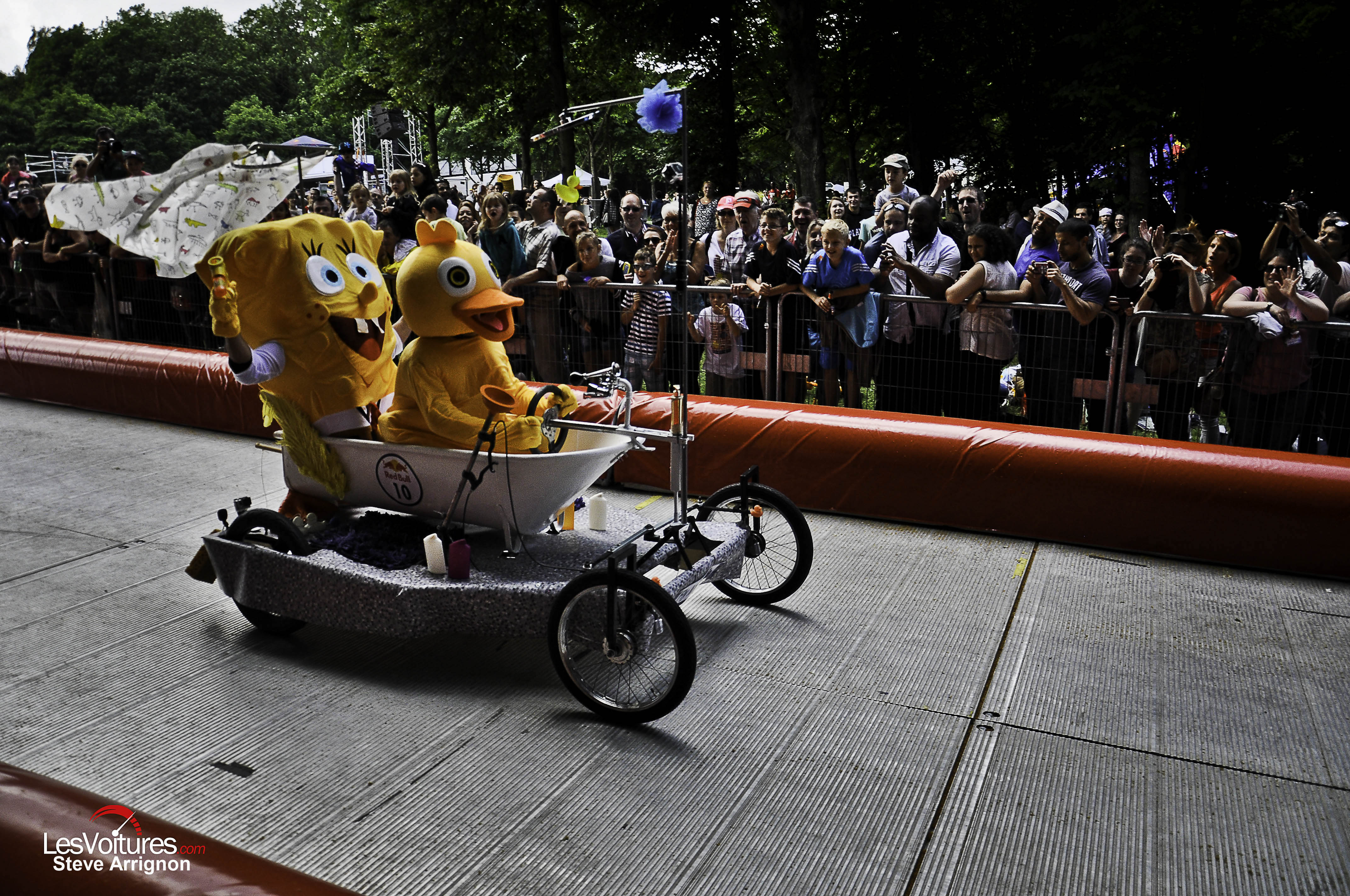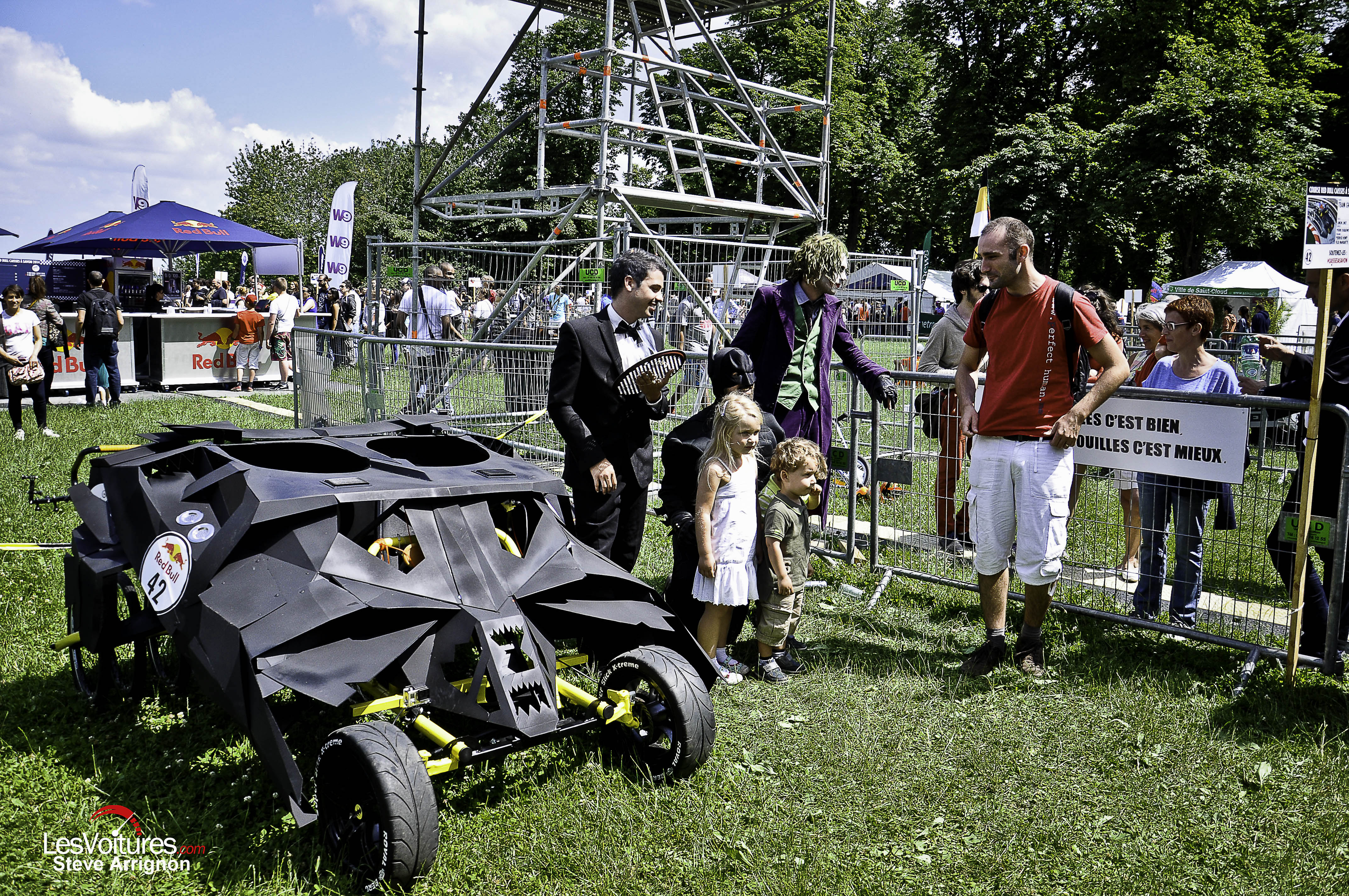 Ce dimanche 15 juin et alors que les prototypes de courses les plus développés au monde, tels que les Porsche 919 Hybrid et les Audi R18 e-tron quattro, luttaient aux 24 Heures du Mans 2014, d’autres voitures, plus simples, extravagantes et originales se sont affrontées pour le « fun » lors de l’évènement Red Bull « Caisses à Savon ». Retour en images sur ses folles bagnoles qui ont attirées 38 000 personnes au Domaine National de Saint-Cloud.