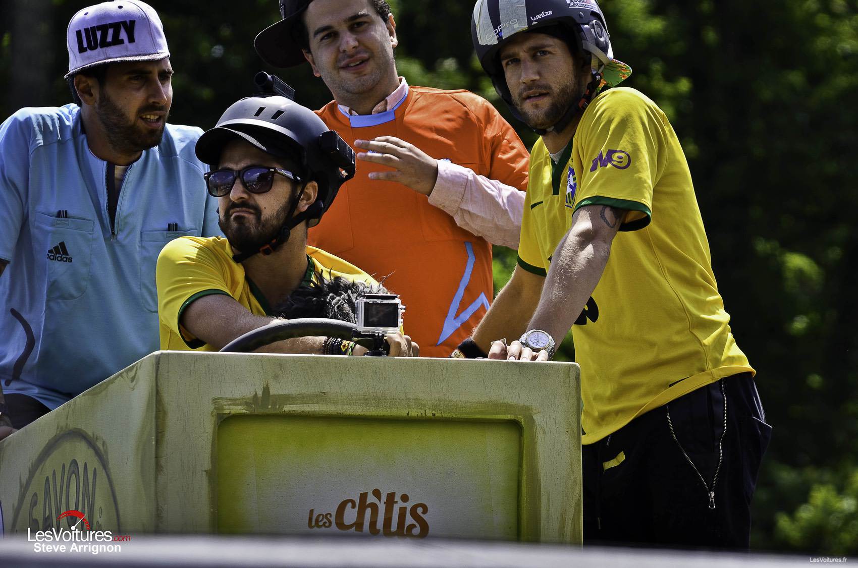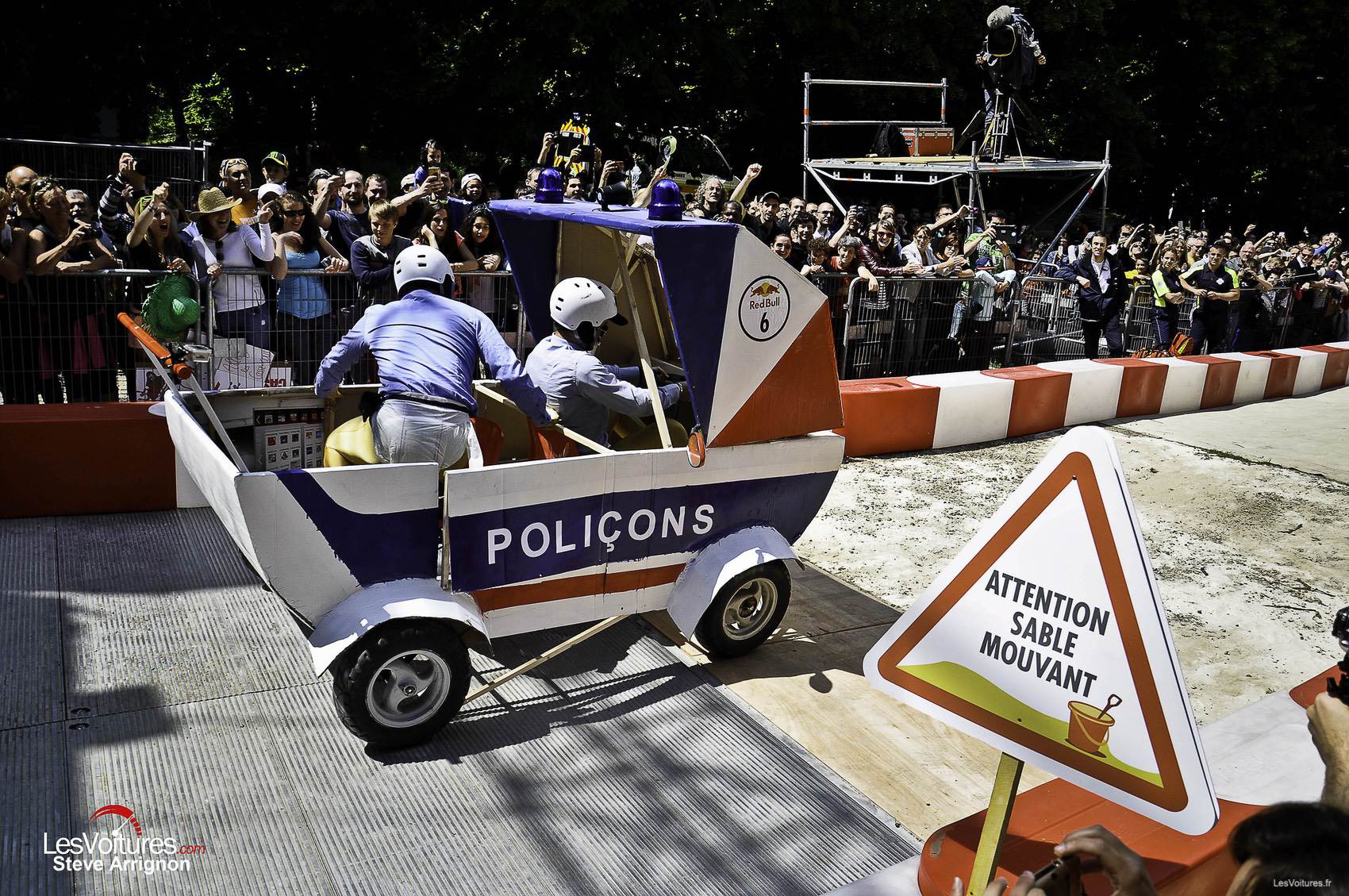 Comme toujours, la marque de boissons énergisantes n’a pas fait les choses à moitié en organisant cette 3ème édition française des « Red Bull Caisses à Savon ». Un jury composé de célébrités a dû départagé les 55 équipes engagées dans cette course folle. Ainsi, Stéphane Peterhansel qui a l’air de prendre les choses très au sérieux, Cyril Déspres, Alexis Pinturault et Pierre Vaultier ont donné leurs notes aux plus belles créations à roulettes !
