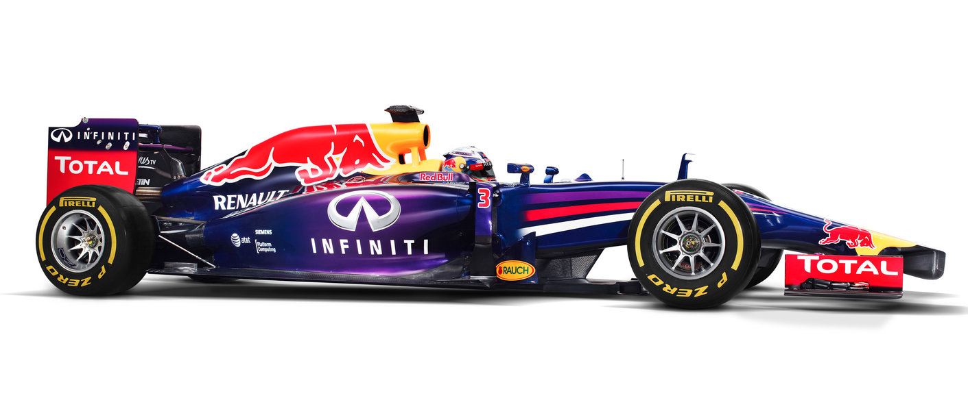 Comparativement aux autres F1 2014, le nez de la RB10 est plutôt très réussi. La livrée au « taureau rouge » du bolide lui procure une belle ligne très fluide.