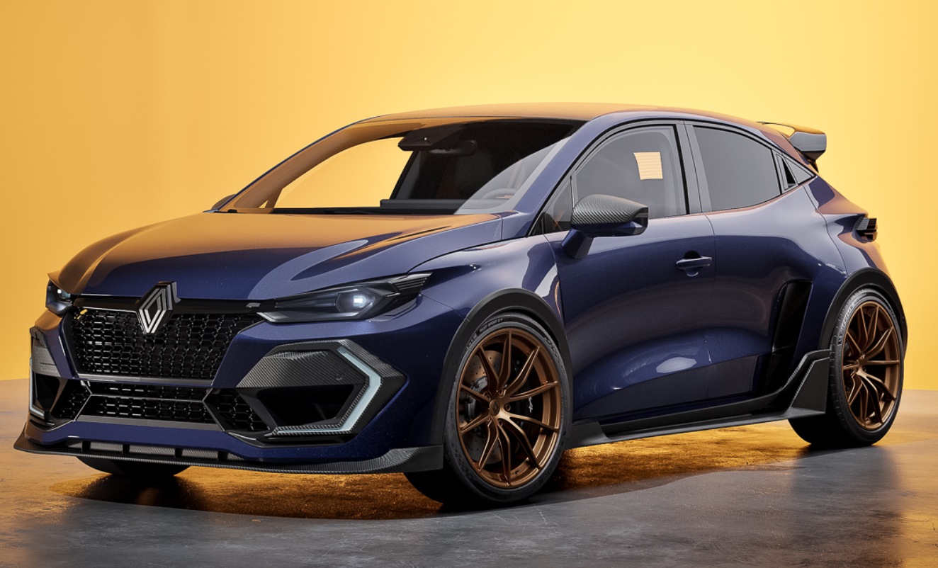 Dans son interprétation d’une Renault Clio 6 R.S. Williams (R.S. pour Renault Sport), Baylis ne se contente pas de reprendre les codes de la Williams originelle : il les transcende. La carrosserie adopte un bleu profond métallisé, immédiatement évocateur du « Bleu Sport 449 », tandis que les jantes dorées modernisées prolongent l’hommage sans tomber dans la nostalgie facile. L’ensemble respire la performance, la compacité et l’agressivité maîtrisée. C’est à découvrir plus en détail sur le compte Instagram de David Baylis.