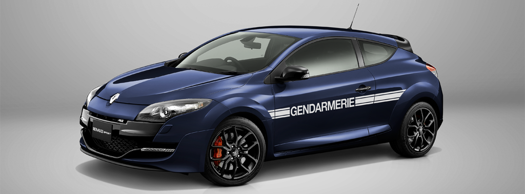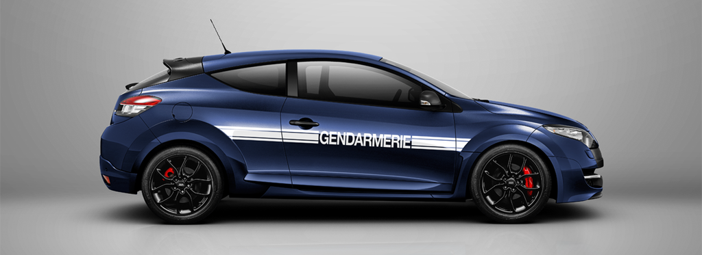En France, il est strictement interdit de rouler à bord d’un véhicule stické « Gendarmerie » ou « Police », mais pas au Japon. Renault commercialise ainsi au Japon une version limitée très spéciale de la Renault Mégane avec la R.S. « Gendarmerie ».