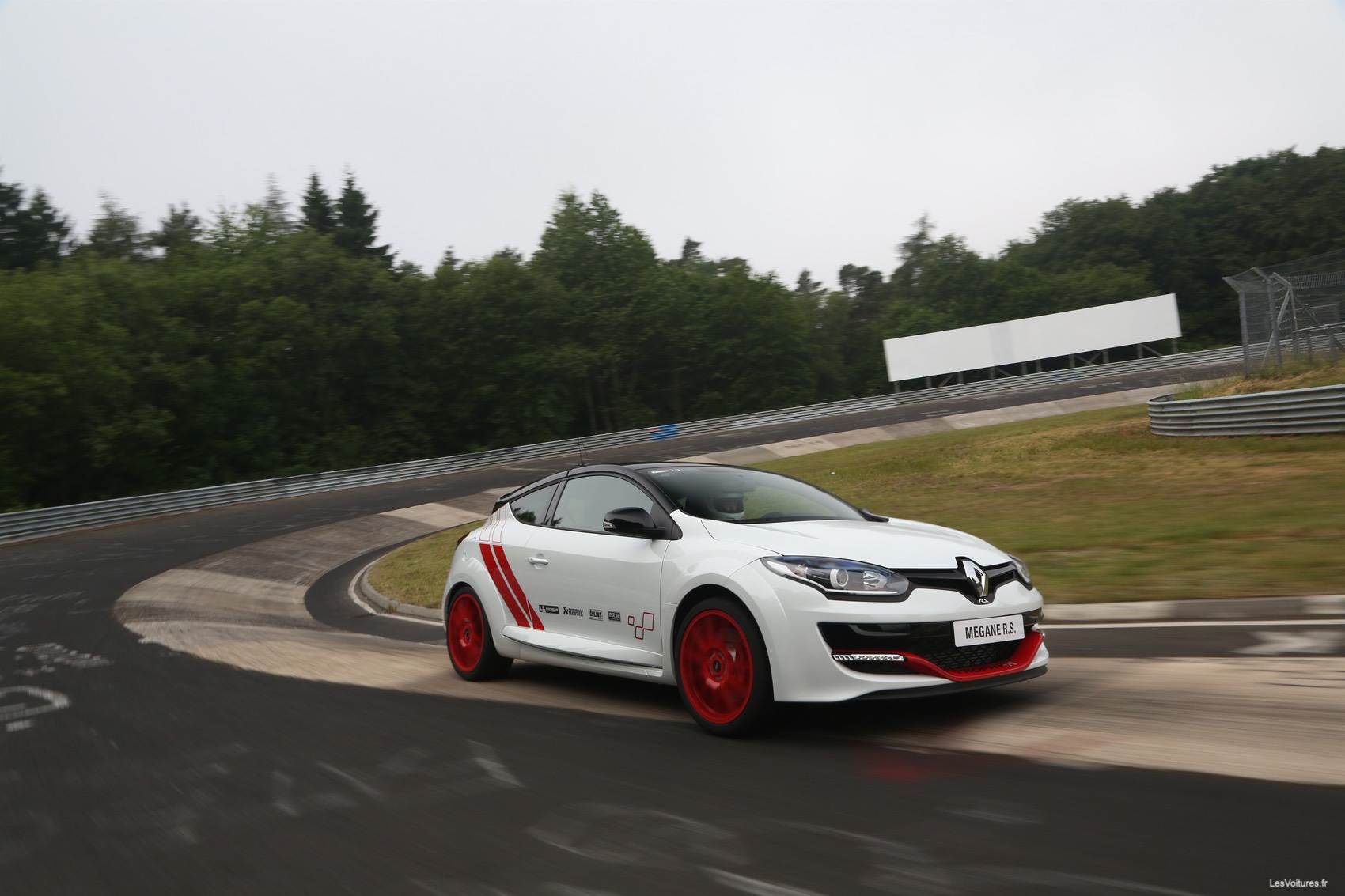 En mars 2014, la Leon Cupra a réalisé le temps de 7’58’44. Mais la française la devance aujourd’hui de plus de 4 secondes. La Mégane R.S. 275 Trophy-R est une sportive 2 places dérivée de la récente Mégane R.S. 275 Trophy. Elle est équipée de série du châssis Cup avec différentiel à glissement limité et du moteur 2.0 L essence R.S. porté à 275 chevaux, d’une ligne d’échappement Akrapovic en titane, d’amortisseurs Öhlins « Road&Track ». Ces derniers sont réglables et sont composés, entre autres, de ressorts en composite. Les pneus du bolide au losange sont des Michelin Pilot Sport Cup 2.