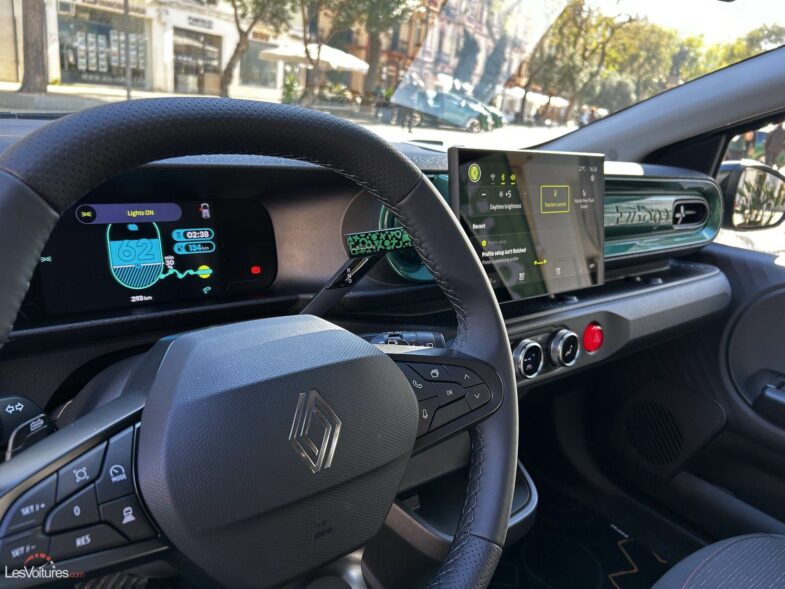 Sa batterie LFP de 27,5 kWh promet 263 km d’autonomie WLTP pour une consommation annoncée entre 13 et 13,7 kWh/100 km. Lors de notre essai de la Renault Twingo E-Tech électrique, nous avons relevé 10,6 kWh/100 km dans des conditions idéales, soit une autonomie réelle de 254,71 km.