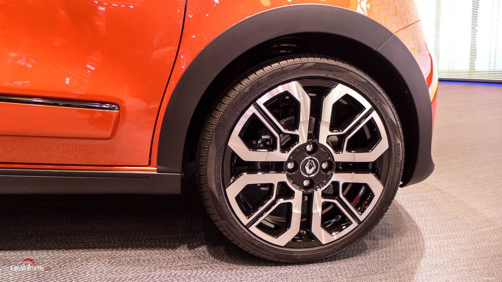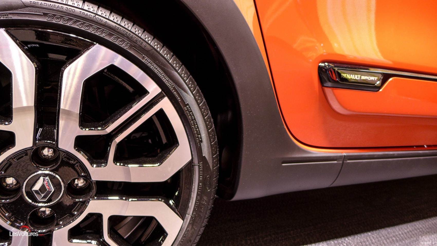 Le châssis bénéficie quant à lui d’une barre anti-roulis renforcée. Les suspensions et les amortisseurs ont aussi fait l’objet d’un travail « sportif ». La Twingo GT est d’ailleurs plus basse que les autres Twingo. Sans oublier que la direction est plus directe. Renault Sport s’est aussi penché sur les aides à la conduite à travers l’ESP. Ce dernier a été ajusté pour offrir plus de « Fun to Drive ». Enfin, les pneus sont bien sûr plus larges. Ils sont montés sur des jantes Twin’Run au nom et surtout au design identique à celles du concept de 2013 au V6 de 320 ch.