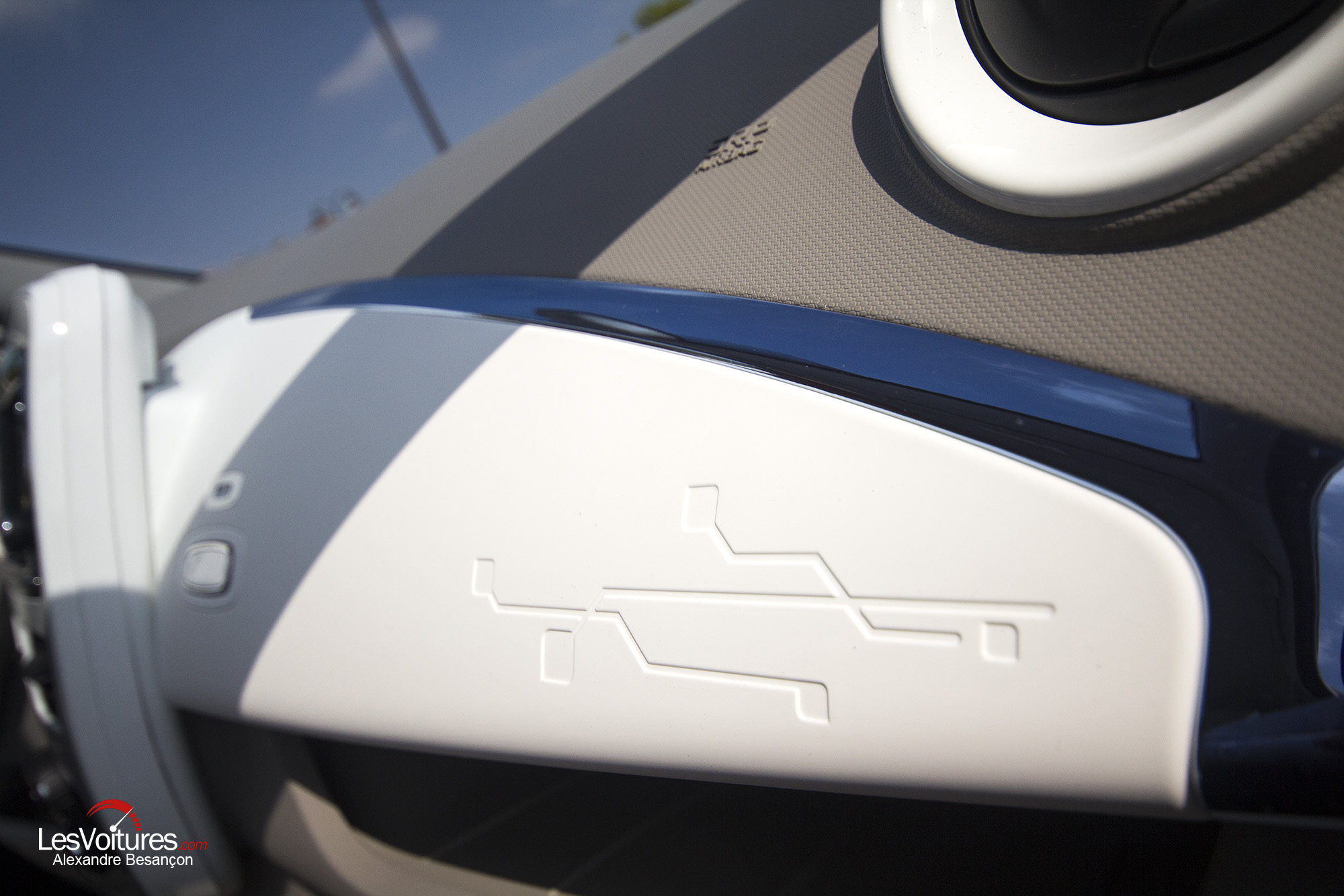 La Renault ZOE détonne dans le petit monde des voitures électriques. La petite fée électrique se démarque au premier coup d’œil avec sa bouille sympathique et ses détails bleutés. Le design de l’auto est frais et épuré. La calandre au losange se prolonge sur de longs optiques de phares à l’avant, tandis que le bouclier se pare de deux feux diurnes à LED. Une ligne partant des phares se prolonge sur le profil de l’auto, ainsi qu’une seconde qui prend naissance après les poignées de portes et qui rejoint les feux arrière en losange. Tout ceci confère à la petite citadine un look très dynamique, renforcé par des jantes originales et spécifiques. De quoi rendre jalouse la « Vieille Dame », qui jouit également d’un patrimoine visuel tout à fait particulier !