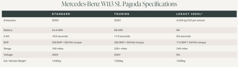 Enfin, aucun tarif n’a été communiqué, les intéressés par le rétrofit dédié à la Mercedes-Benz W113 « Pagoda » devant se manifester auprès d’Everrati.