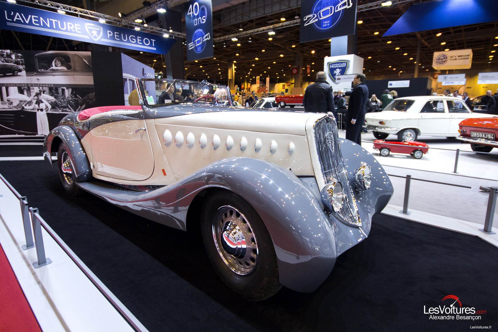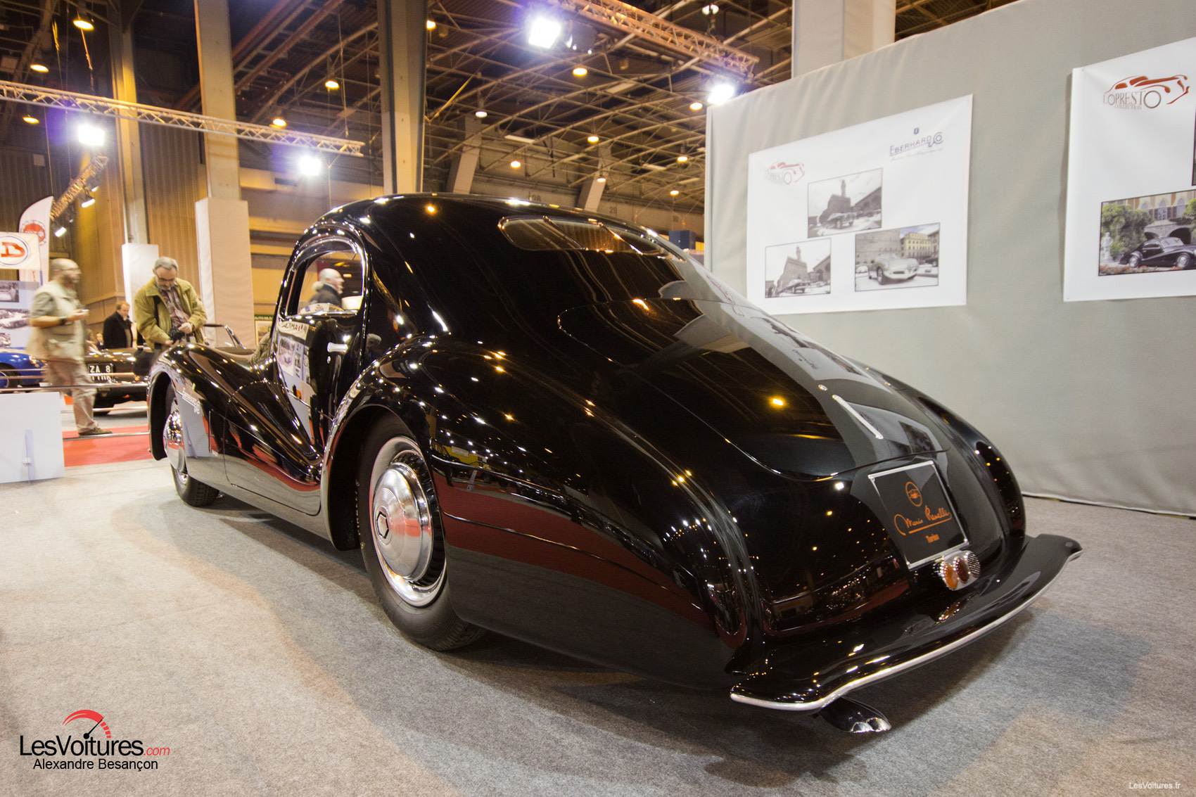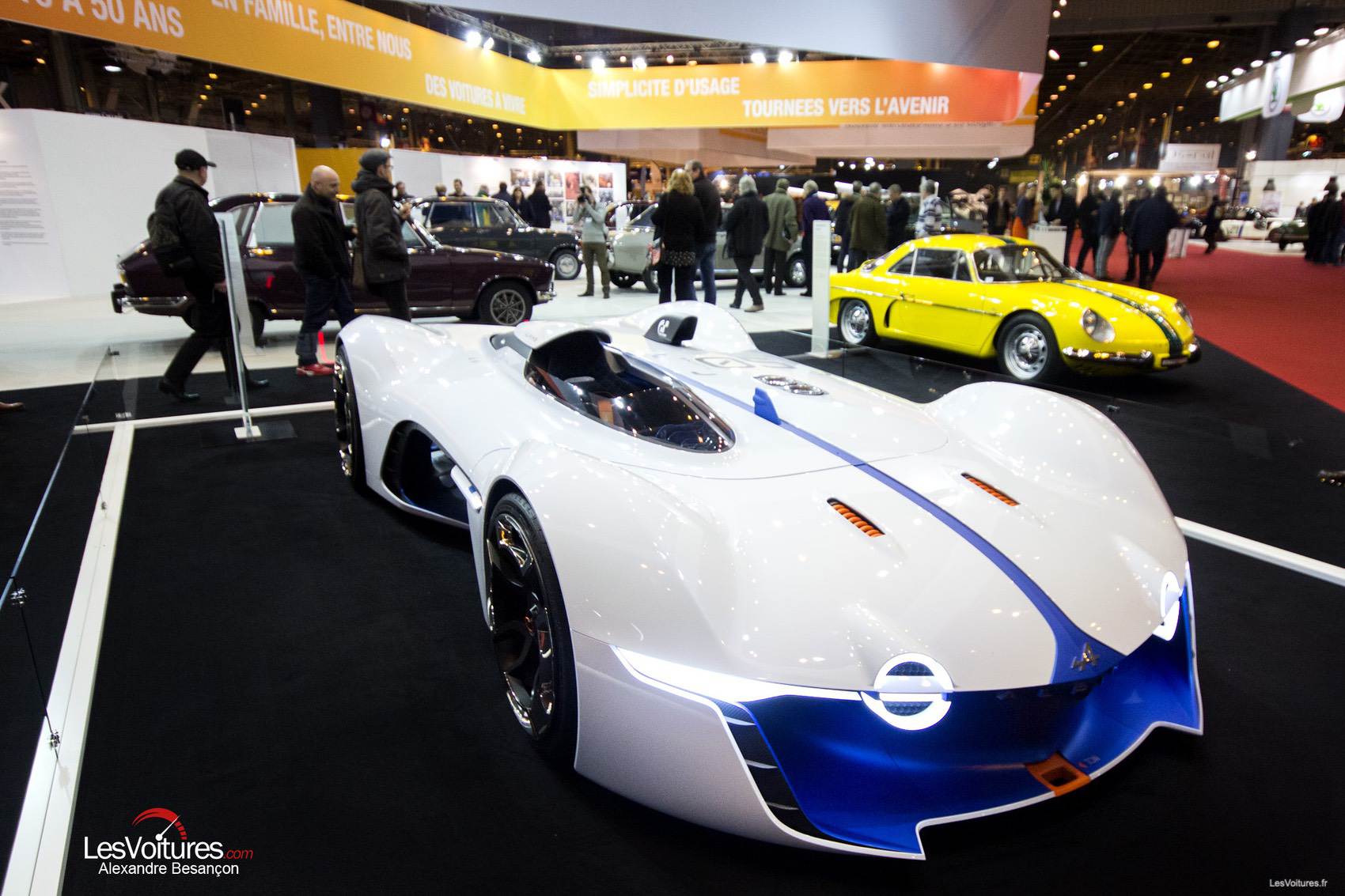 Du 4 au 8 février derniers, les passionnés de voitures anciennes se sont rués à la 40ème édition du salon Rétromobile. Et cette année, le « temple éphémère » dédié à nos belles d’antan a encore battu un record d’affluence avec près de 119 000 visiteurs, soit une hausse de fréquentation de 25 000 entrées comparativement à 2014. Il est vrai que la collection Baillon y est pour beaucoup mais le Hall 1 du Parc des Expositions de la Porte de Versailles a également accueilli des véhicules aussi prestigieux que rares. Notre photographe, Alexandre Besançon, a ainsi arpenté les allées de Rétromobile 2015 et vous propose les plus beaux clichés du salon. Un intrus futuriste très français, à quatre roues, s’est glissé parmi nos chères anciennes. A vous de retrouver cette voiture pas comme les autres…