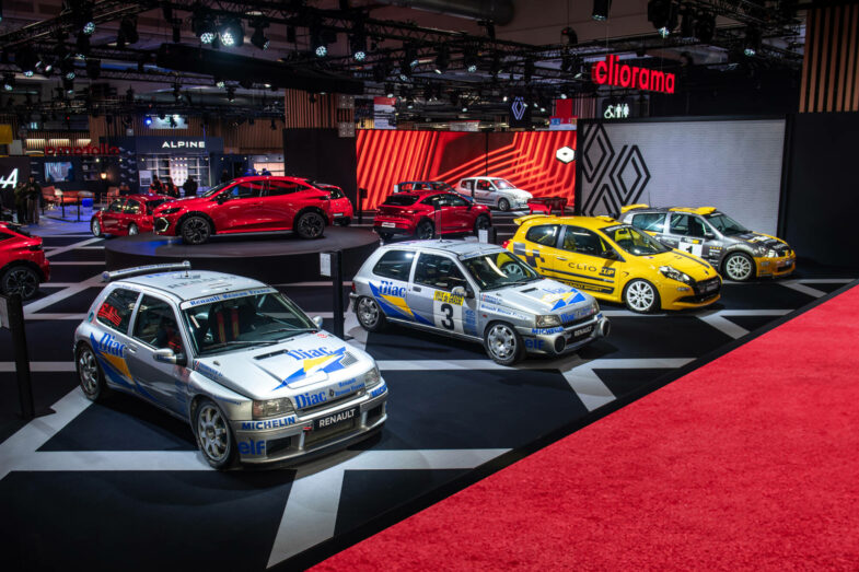 Le sport automobile occupe une place majeure dans « Cliorama ». La Renault Clio Groupe A (1991) rappelle les exploits de Jean Ragnotti, Alain Oreille et Philippe Bugalski, qui ont mené cette petite traction à des victoires face à des machines bien plus puissantes. Encore plus radicale, la Renault Clio Maxi Kit Car (1994) incarne l’âge d’or des kit‑cars, lorsque Renault transformait sa citadine en véritable arme pour les spéciales asphaltées. La compétition client est représentée par la Renault Clio Cup (2007), dérivée de la Clio III RS, qui a structuré une filière accessible et performante pour les pilotes amateurs. Enfin, la Renault Clio RS Super 1600 (2002) rappelle les succès de la Clio II en rallye dans la catégorie éponyme, où elle s’est illustrée par son agilité et son rapport poids‑puissance redoutable.
