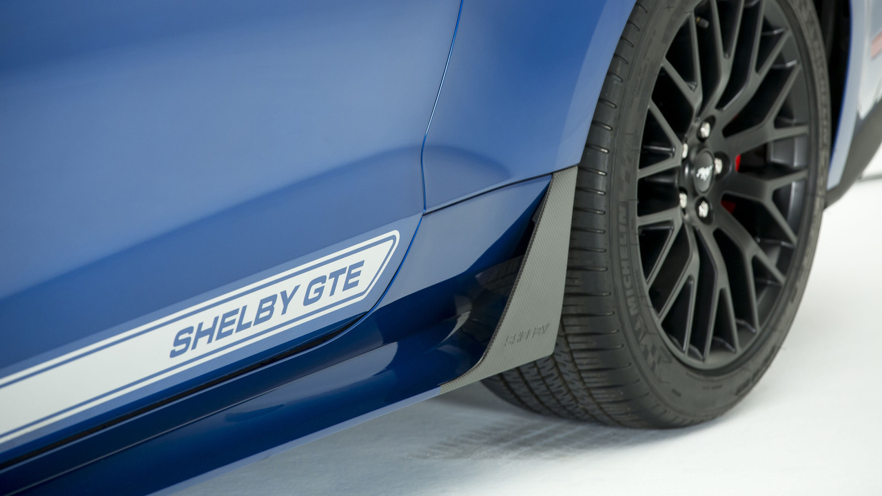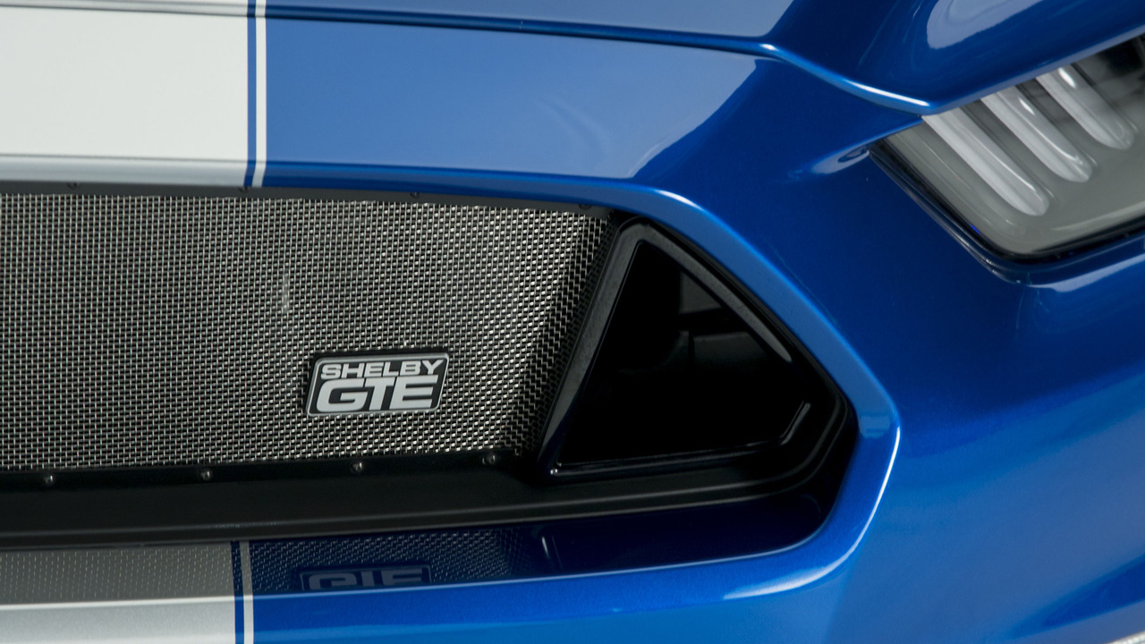 Pour parachever le travail visuel et marquer la différence avec la Mustang des badges Shelby sont présents à l’avant et le Mustang de l’arrière a été remplacé par un logo GTE. Des bandes latérales font également apparaître la signature Shelby.
