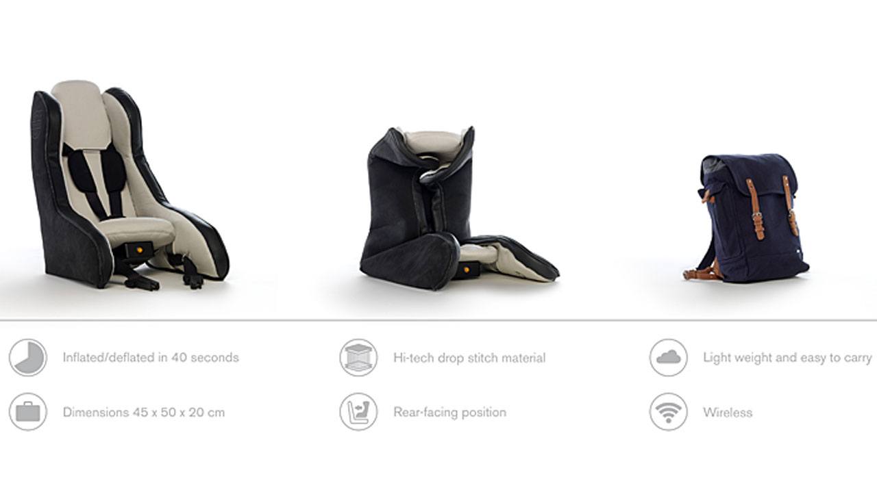 En effet, le prototype de siège, sorti des bureaux d’études de Volvo, ne pèse que 5 kilos et se gonfle en 40 secondes, grâce à une pompe silencieuse. L’opération peut même être effectuée à distance via une connexion Bluetooth. Le transport des sièges pour enfants est toujours un vrai casse-tête pour les parents. Volvo va donc peut-être résoudre ce problème. Maria Hansson, Responsable Projet au Volvo Monitoring & Concept Center de Los Angeles nous détaille ce prototype qui sera séduire les jeunes mamans « tendances », surtout quand elles ont des jumelles : « Nous avons utilisé, pour créer le prototype de siège, un matériau exclusif baptisé textile à double paroi. Ce tissu est très résistant une fois gonflé, car il peut supporter une pression interne très élevée. C’est une technique assez répandue dans l’industrie nautique, initialement développée par l’armée dans le but de concevoir des avions gonflables. »