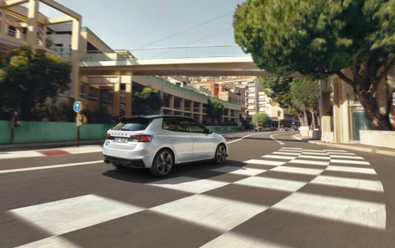 Basée sur la finition « Monte Carlo », la Skoda Fabia 130 bénéficie d’un équipement enrichi. Elle reçoit de série un châssis sport avec une suspension abaissée de 15 mm, un mode sport pour l’ESP et un antipatinage désactivable. Le design extérieur se distingue par des jantes de 18 pouces abritant des étriers de frein rouges, des feux avant à fond noir, une double sortie d’échappement apparente et des logos exclusifs “130” sur les ailes et les seuils de porte.