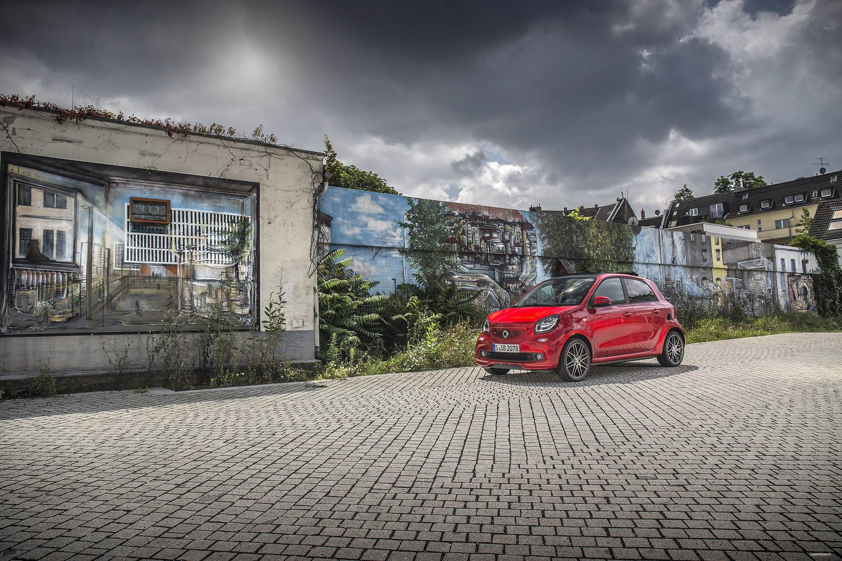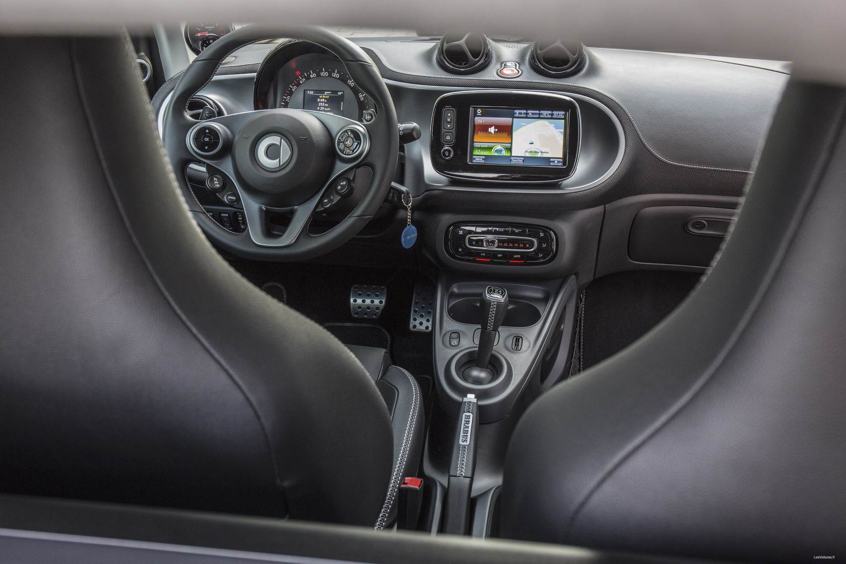 Tout d’abord, nous parlons de gain de puissance sans précédent avec un joyeux total atteignant les 109 ch à 5750 tr/min et tout de même 170 Nm de couple à 2000 tr/min. Ce simple élément place la nouvelle Smart Brabus en pole position d’un segment encore très faible en terme de sportivité. Le moteur turbo associé à la boîte de vitesses à 6 rapports à double embrayage Twinamic propulse l’engin de 0 à 100 km/h en 9,5 secondes pour la fortwo et à une vitesse maximale de 180 km/h pour la grande sœur forfour.