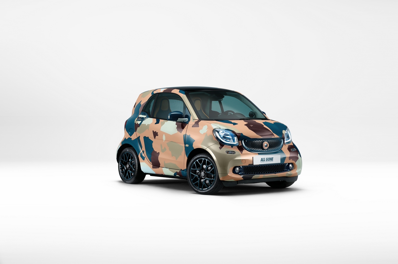 Dix wrappings développés pour la Smart fortwo seront ainsi dévoilés jusqu’au Mondial de l’Automobile de Paris 2016 (1er au 16 octobre). Ils reprendront chacun l’une des couvertures des livres All Gone.