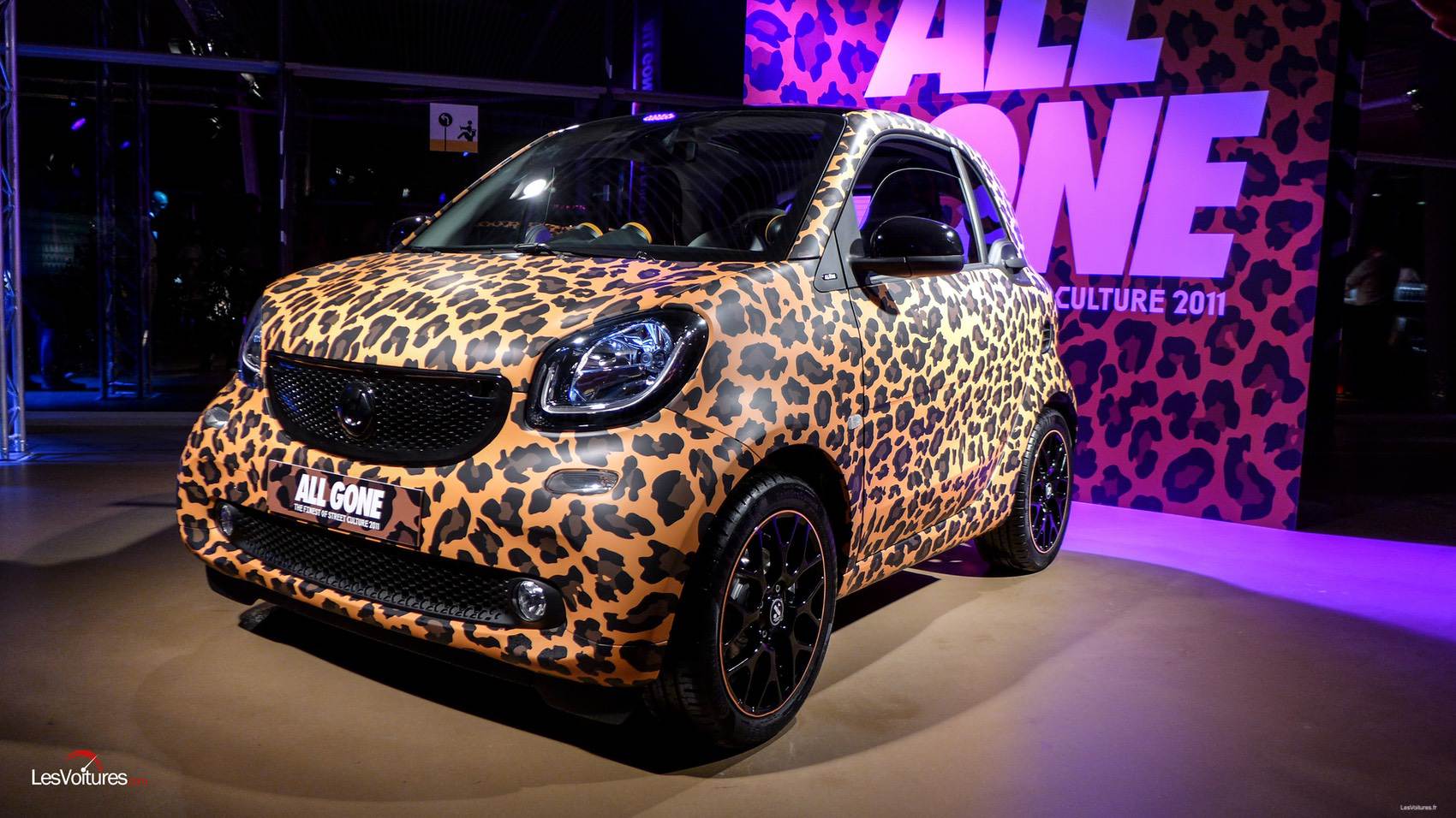 Présenté en début d’année, le projet Smart All Gone permet à la petite citadine d’accéder au rang d’égérie de la Street Culture. Déjà très « fashion », la Smart a ainsi été déclinée sous 10 looks tels des Top Models ! Ces Smart hautes en couleurs et haute couture en cuir, pour l’une d’entre elles, ont été présentées lors d’une soirée mémorable le 8 septembre dernier à l’Electric Bridge. Ce lieu éphémère sera envahi début octobre par les visiteurs du Mondial de l’Auto de Paris.