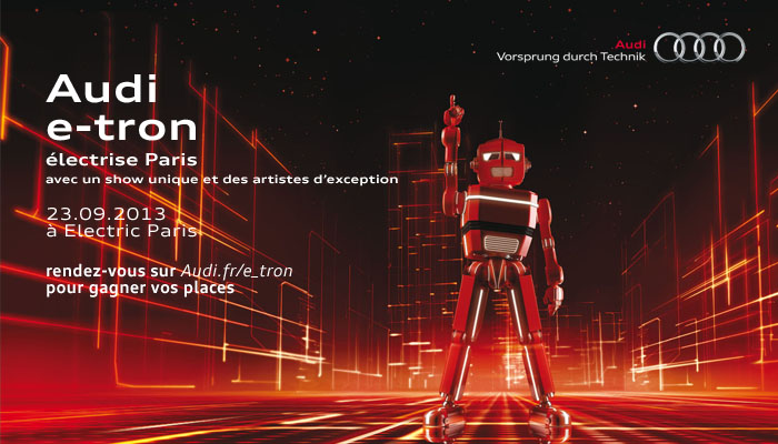 Dès aujourd’hui tentez votre chance pour gagner vos invitations pour la nuit « e-tron » qui représente LA soirée de rentrée des nuits parisiennes ! INSCRIVEZ-VOUS SUR : Audi.fr/e-tron.