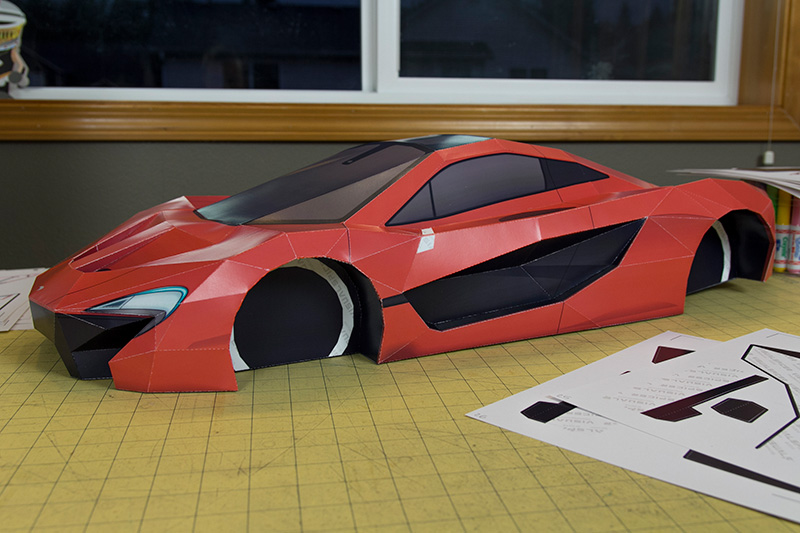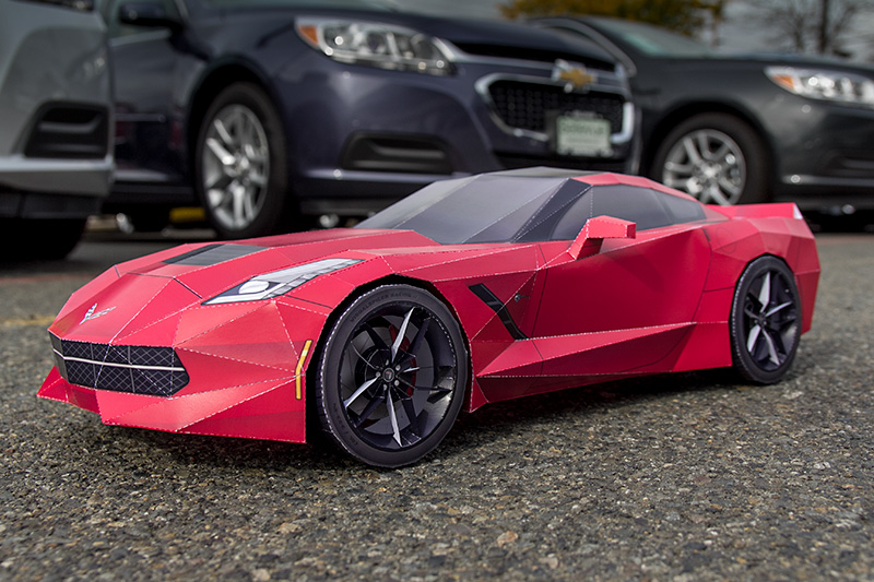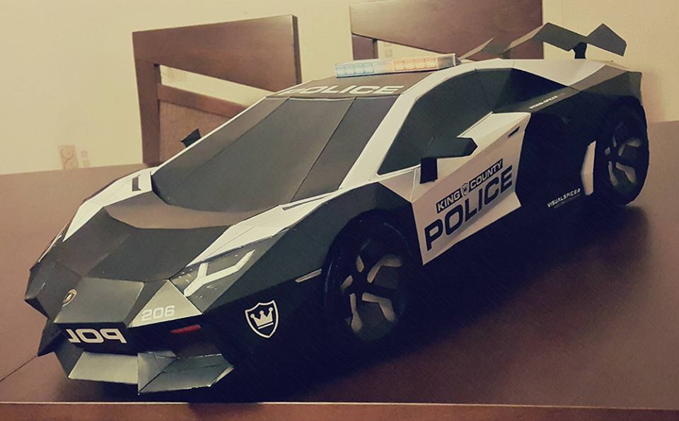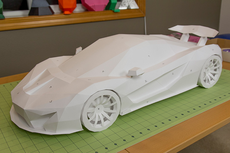 Pour les flemmards ou les maladroits, la maquette imprimée s’offre à 24,99 $ (environ 21,00 €). Parmi les autres modèles disponibles, on retrouve la Chevrolet Corvette C7 Stingray, la Lamborghini Aventador ou encore la Bugatti Veyron. Des clients du monde entier reçoivent ainsi leurs kits, et une fois les découpages, pliages et collages effectués, leurs réalisations sont publiées sur la page facebook du designer et graphiste.
