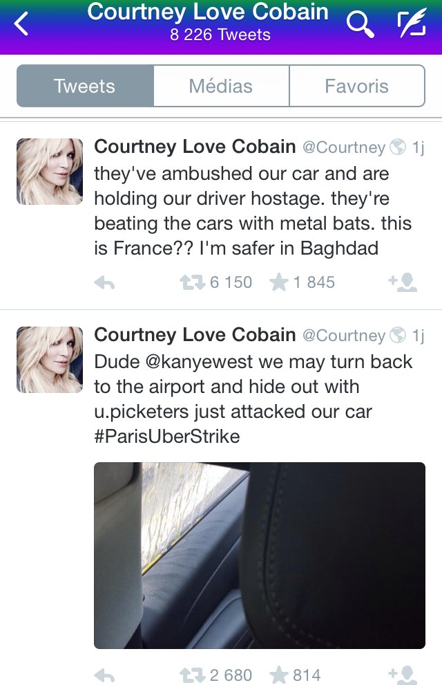 Les réseaux sociaux se sont enflammés tout au long de la journée. L’exemple même, le plus médiatisé, est le twitt de Courtney Love dont la voiture a été attaquée par des chauffeurs de taxis.