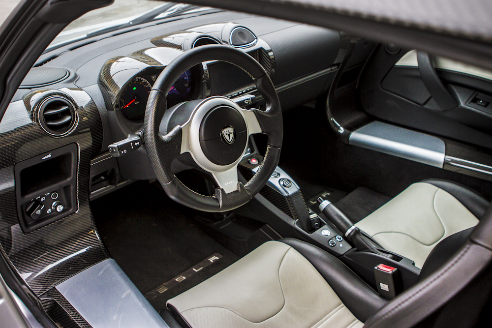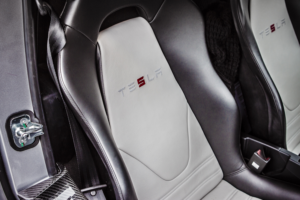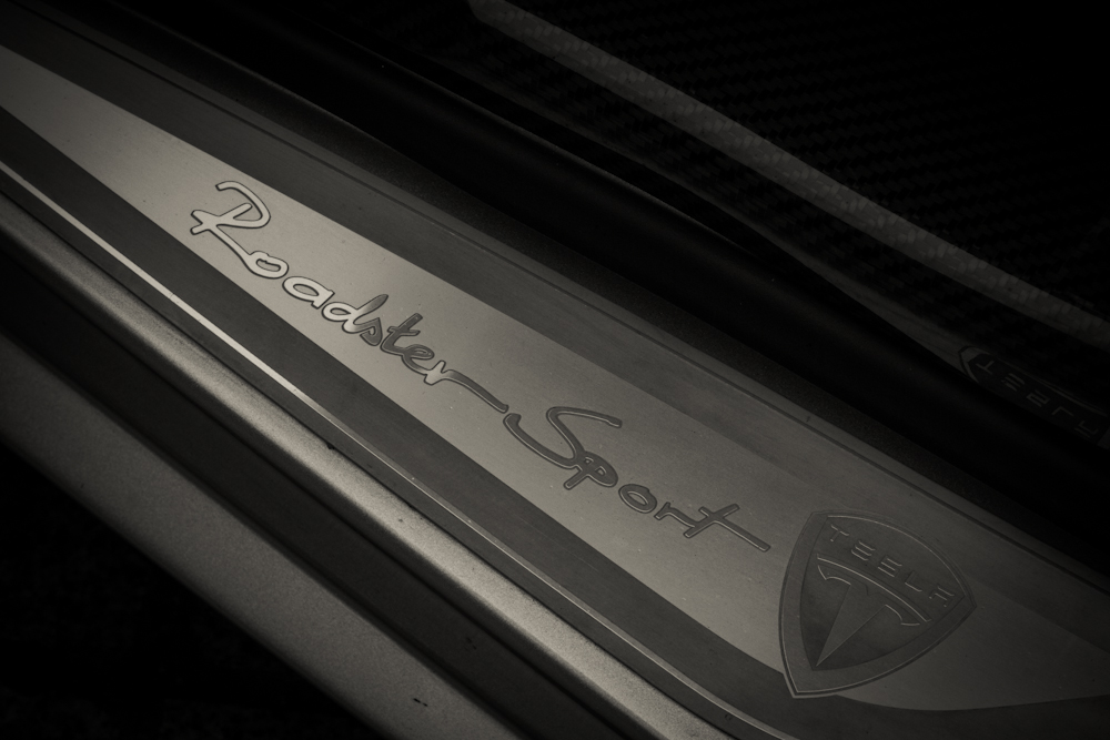 Karine, une amoureuse des Roadsters, nous fait immédiatement part de ses impressions sur le design de l’auto, un modèle Sport 2.5, couleur Sterling Silver : « L’avant de l’auto dégage beaucoup d’agressivité tel un requin et le dessin des phares est particulièrement réussi. » Il est vrai que les ouïes latérales du bouclier avant de la version 2.5 offrent à notre requin électrique un visuel sportif. A l’arrière l’ajout d’un diffuseur accentue cette sensation par rapport au modèle 1.0 de 2008. La carrosserie de l’auto est entièrement composée de carbone. Le roadster pèse 1 235 kilos, les batteries y sont pour beaucoup dans ce chiffre élevé pour une voiture de petite taille.