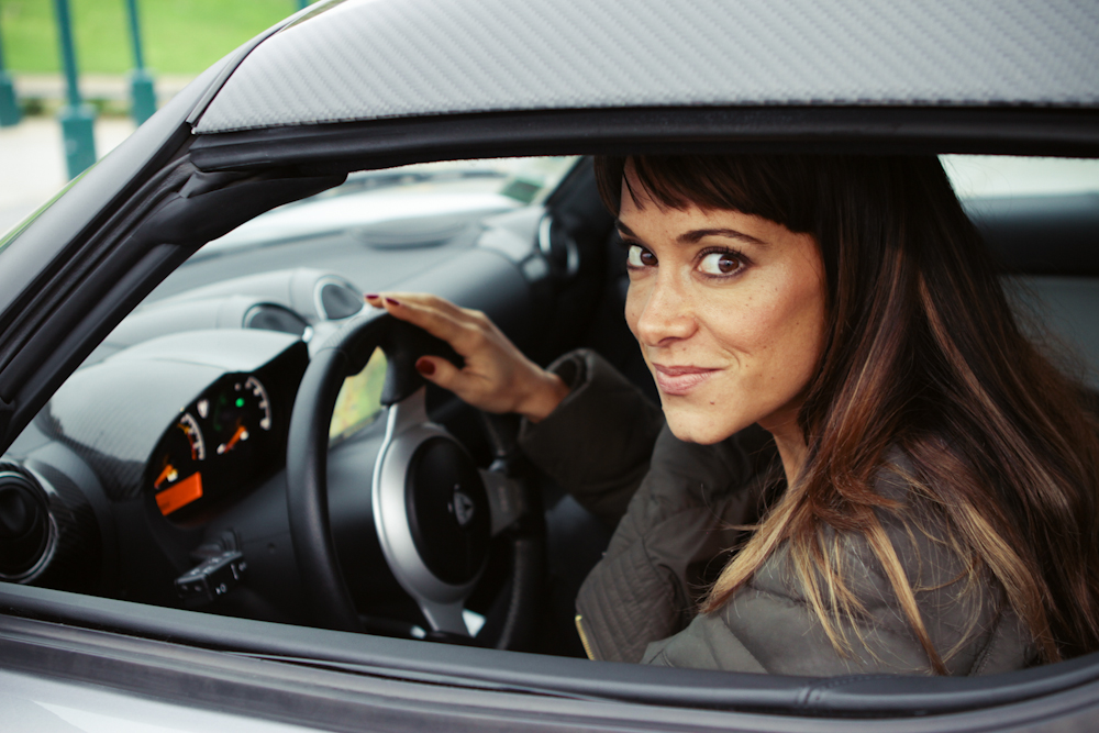 Karine est immédiatement très à l’aise avec le Roadster. Il est vrai que notre invitée est une grande passionnée d’automobile. Elle participe régulièrement à des compétions comme le Trophée Andros et a même remporté la course des célébrités au Stade de France en 2006 devant 50 000 Personnes ! On devrait d’ailleurs la retrouver aux 24H de Dubai les 10, 11 et 12 janvier 2013.