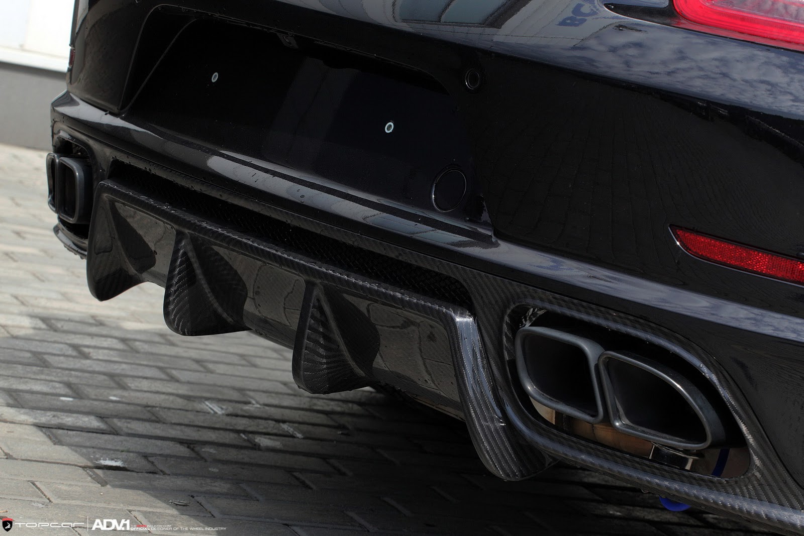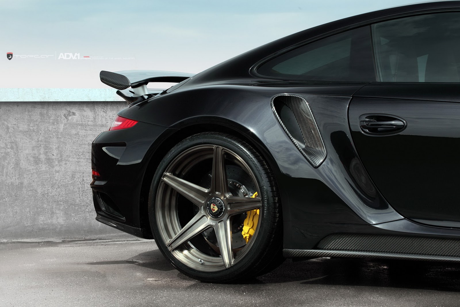 L’omniprésence de la fibre de carbone marque le style du kit carrosserie proposé par TopCar pour les propriétaires des deux modèles de 911 citées précédemment en Coupé ou Cabriolet. Les différents appendices aérodynamiques élaborés par les russes se retrouvent sur des jupes latérales, l’aileron arrière, l’extracteur arrière et son bouclier, les entrées d’air, le spoiler avant et les contours magnifiques des antibrouillards.