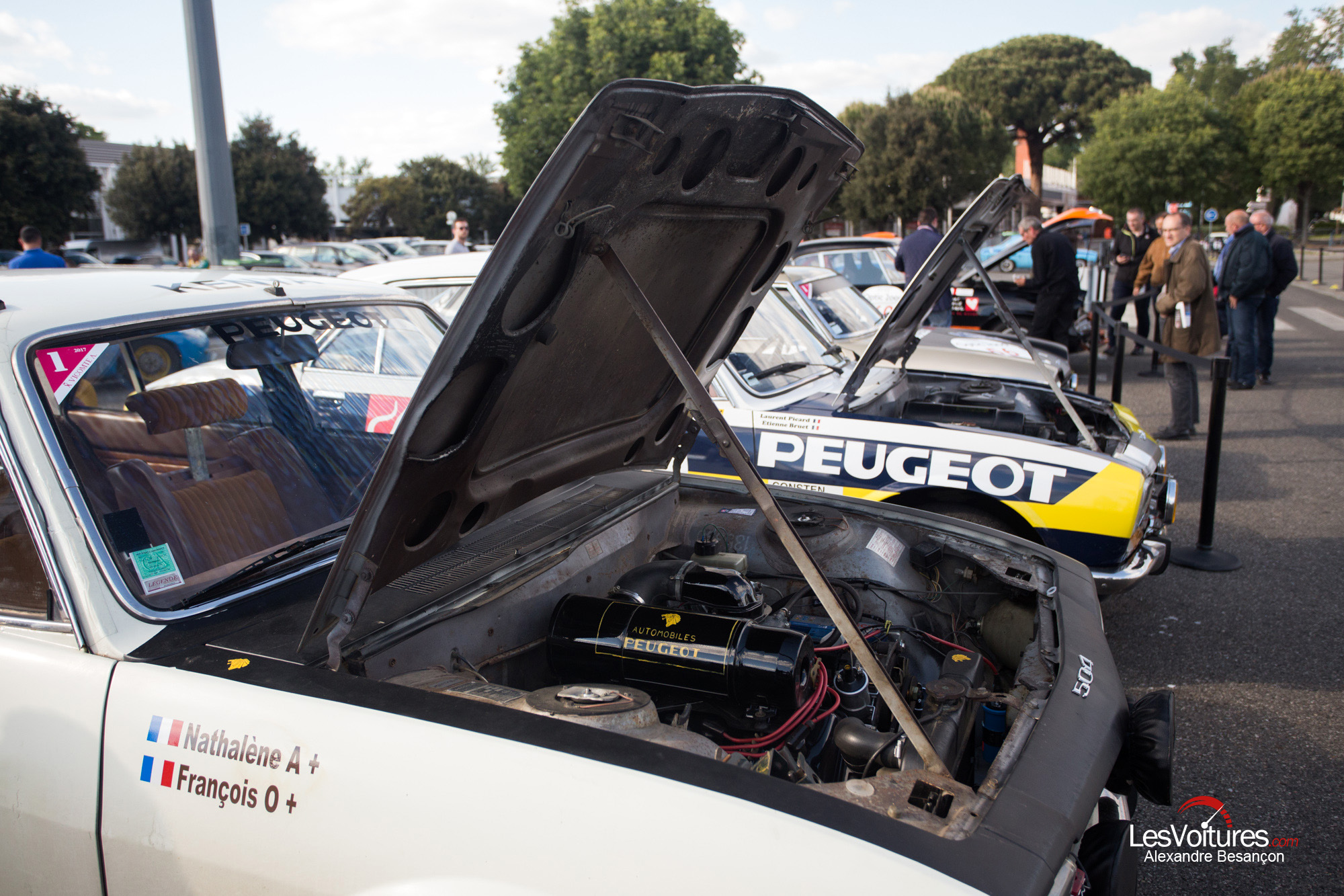 A l’arrivée, Gaëtan Demoulin et Mathieu Sentis (204 Coupé #56) se classent 13ème, Etienne Bruet et Laurent Picard (504 Berline #55) terminent 36ème et le couple de Gaillard au 48ème rang.