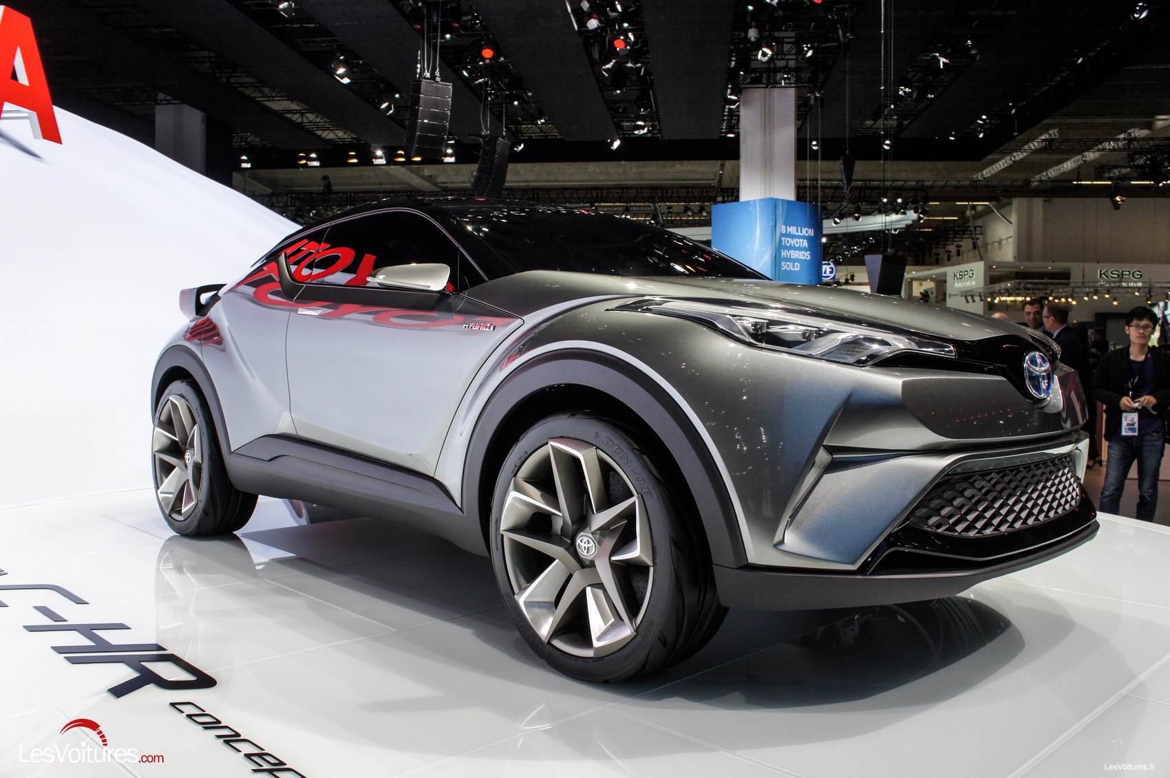 De Paris à Francfort, le C-HR Concept évolue avec notamment l’apparition de vrais rétroviseurs extérieurs et de 5 portes. Surnommé l’anti-Juke, le crossover Toyota a été développé sur la plate-forme TNGA (Toyota New Global Architecture) dont la nouvelle Prius bénéficie. Visuellement, le C-HR Concept quitte sa teinte bleue de Paris (à voir en fin d’article) pour un gris métallisé plus conventionnel.