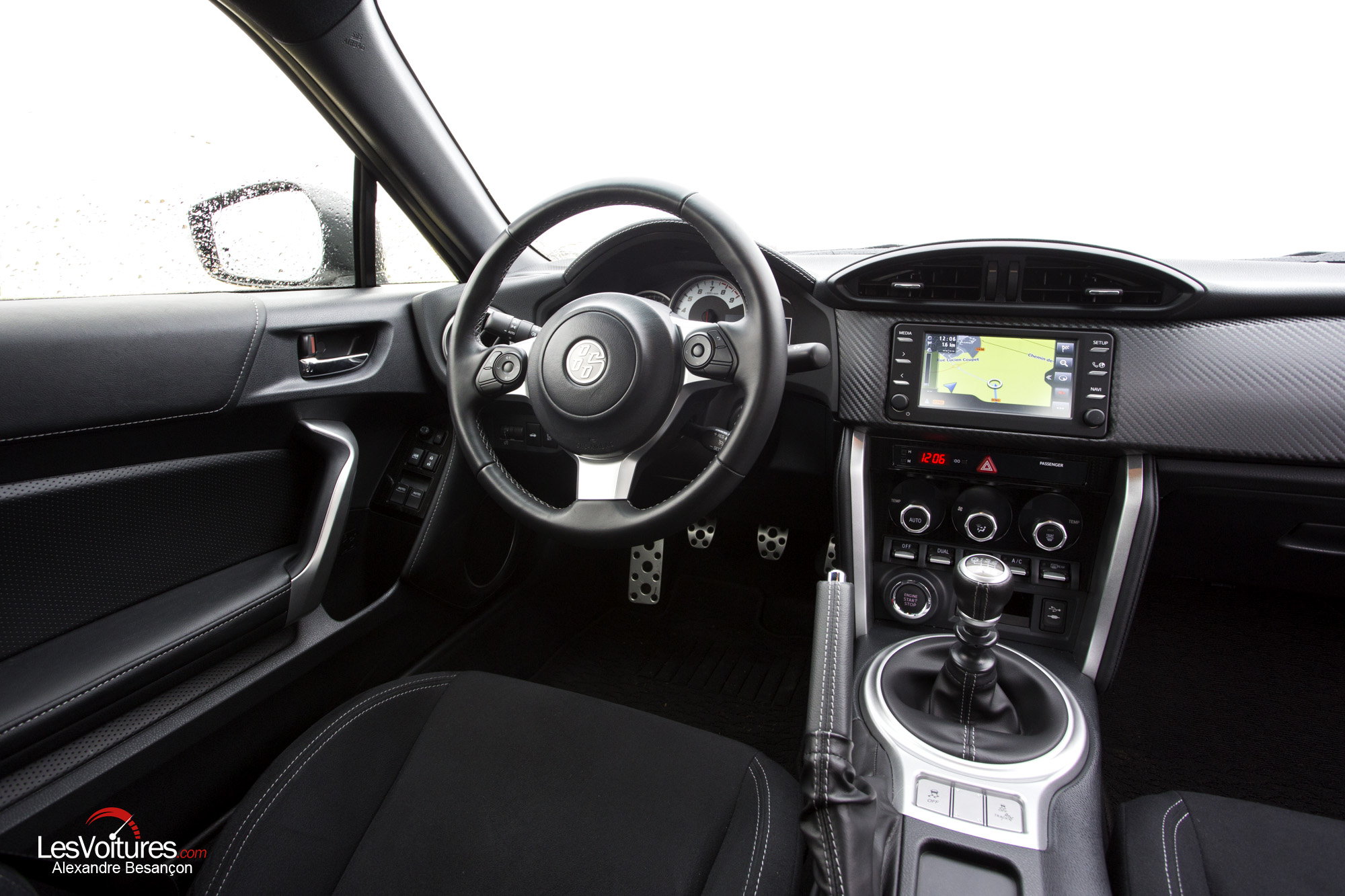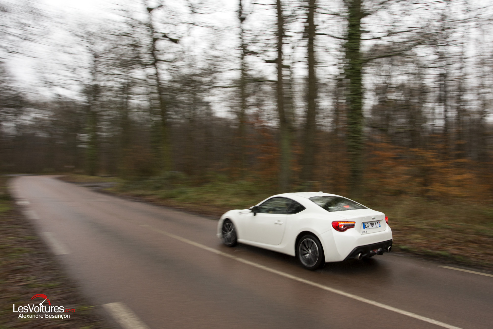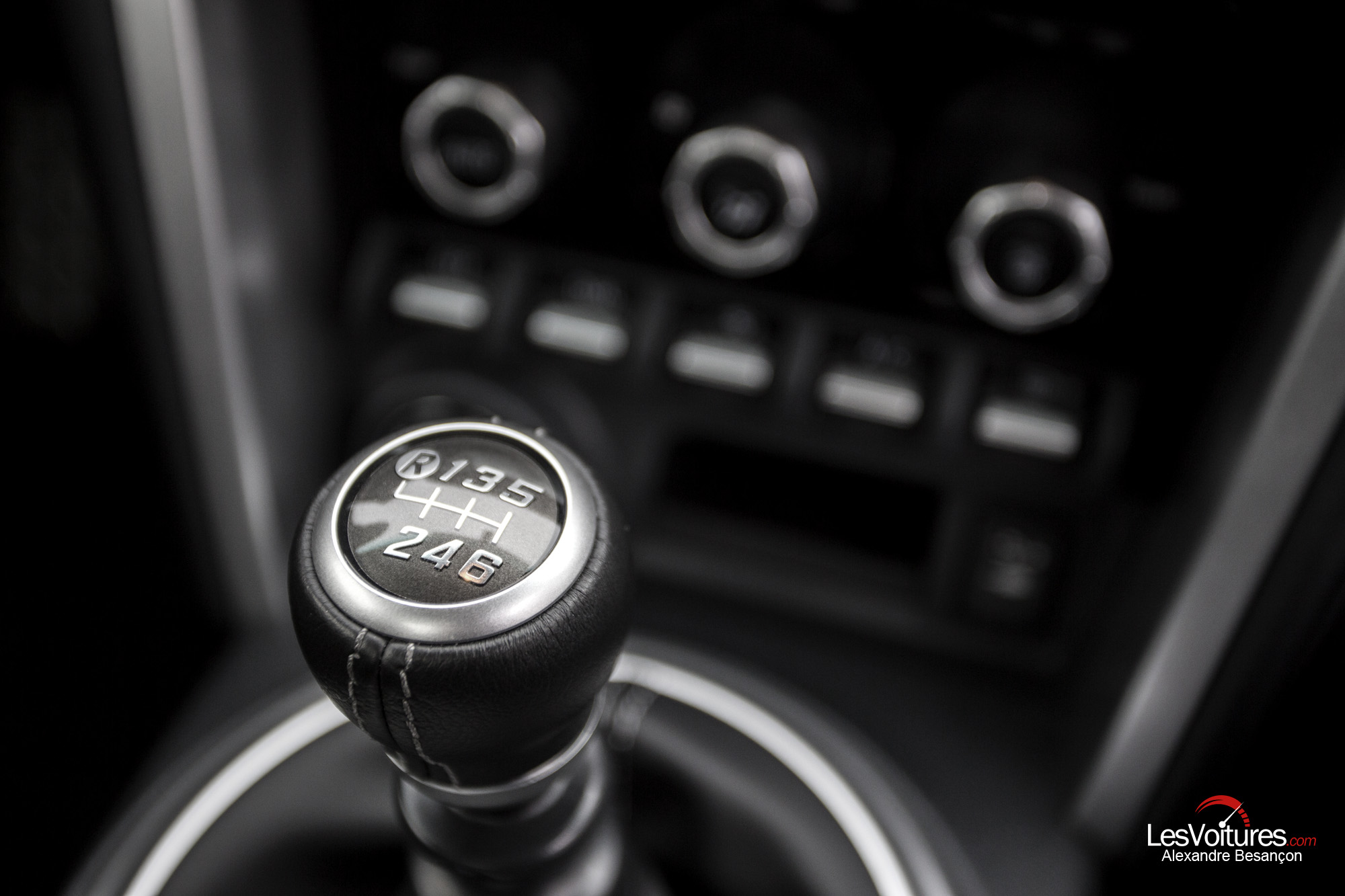 En ligne droite, l’accélération est très linéaire. Après 5 000 tr/min et, plus on s’approche des seuils maximaux du couple (205 Nm de 6 400 à 6 500 tr/min), et de la puissance, plus les sensations ressenties sont grisantes. Le son rauque qui s’échappe de la double sortie d’échappement y contribue beaucoup. A cela s’ajoutent, un toucher assez direct au niveau de la direction et une manipulation de la commande de boîte très efficace. Cette dernière représente l’un points forts de la GT86.