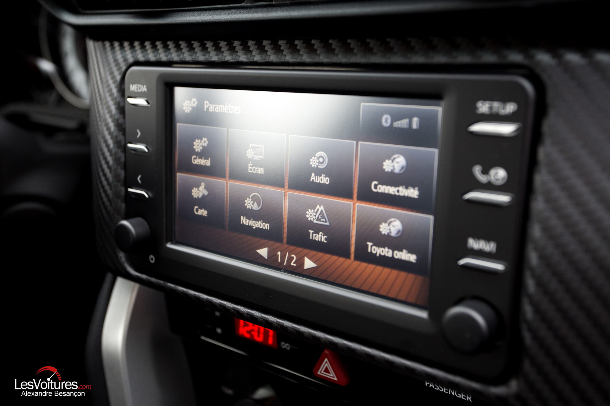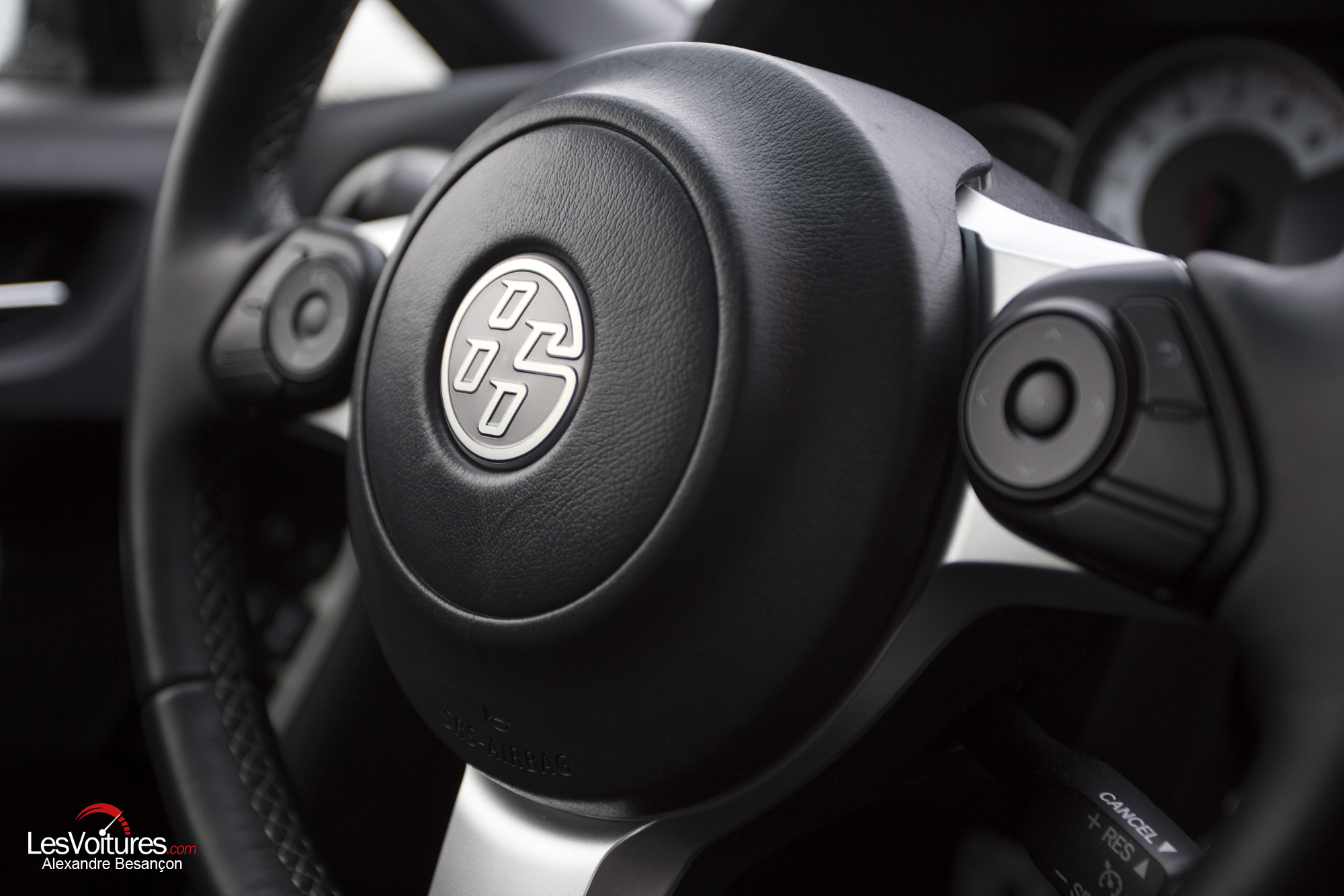 Pour commencer à livrer nos impressions de conduite, notons que la puissance du coupé est identique à celle du précédent modèle. Les fans de l’auto en seront déçus mais le constructeur japonais s’est vu imposé cette continuité pour éviter un trop fort malus, à croire, que, pour le gouvernement français, que le temps qui passe c’est de l’argent gagné (180 g/km de CO2 émis soit 7 073 € de malus). C’est donc le 4-cylindres 2.0 l atmosphérique de 200 ch (à 7 000 tr/min) qui officie sous le capot de la japonaise. Les ingénieurs de chez Toyota se sont alors concentrés sur les trains roulants , les réglages et quelques optimisations technologiques. Au programme de cet « upgrade mécanique » on trouve donc une suspension retravaillée, une rigidité accrue avec une barre anti-roulis plus épaisse.
