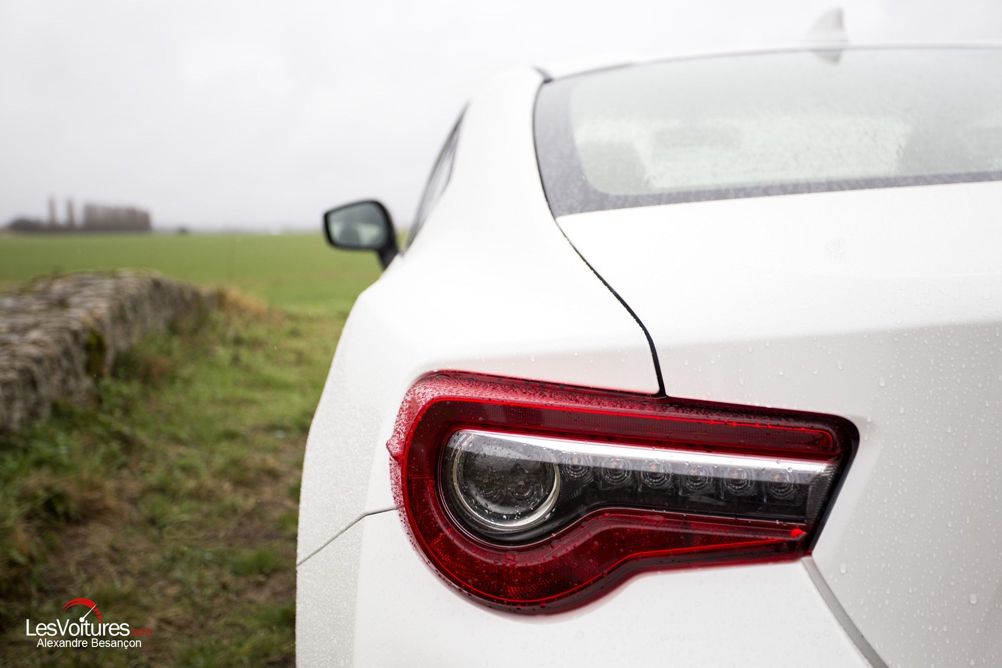 L’arrière de la GT86 n’est pas en reste. Le dessin des feux à LED est plus étiré et le bouclier gagne en muscles comparativement à l’ancienne version trop rectiligne. A noter que notre version d’essai ne dispose pas de l’option aileron arrière (300 €). Dommage, Toyota aurait pu l’intégrer en série à la vue de l’ADN , encore une fois, sportif, de ce petit bolide.