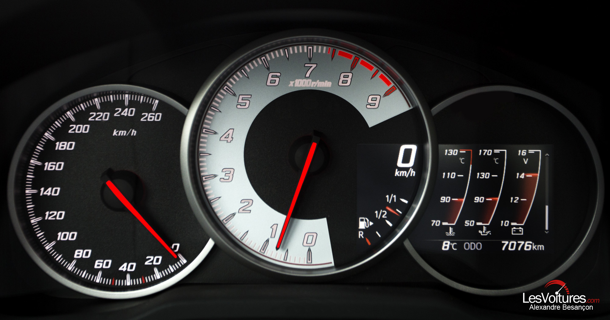 Déçu de l’habitacle de la GT86 lors de notre essai de 2013, nous étions impatients de découvrir d’éventuelles améliorations. Le « gap » entre les deux générations du coupé est ainsi, et logiquement, important. La qualité des matériaux progresse et la finition a fait l’objet d’un travail important. Sans être devenu parfait, saluons donc les efforts faits par Toyota avec notamment des touches d’Alcantara qui habillent cet espace de vie restreint. Mais finalement, ce qui nous intéresse au plus haut point, c’est la position de conduite une fois assis dans les sièges semi-baquets.