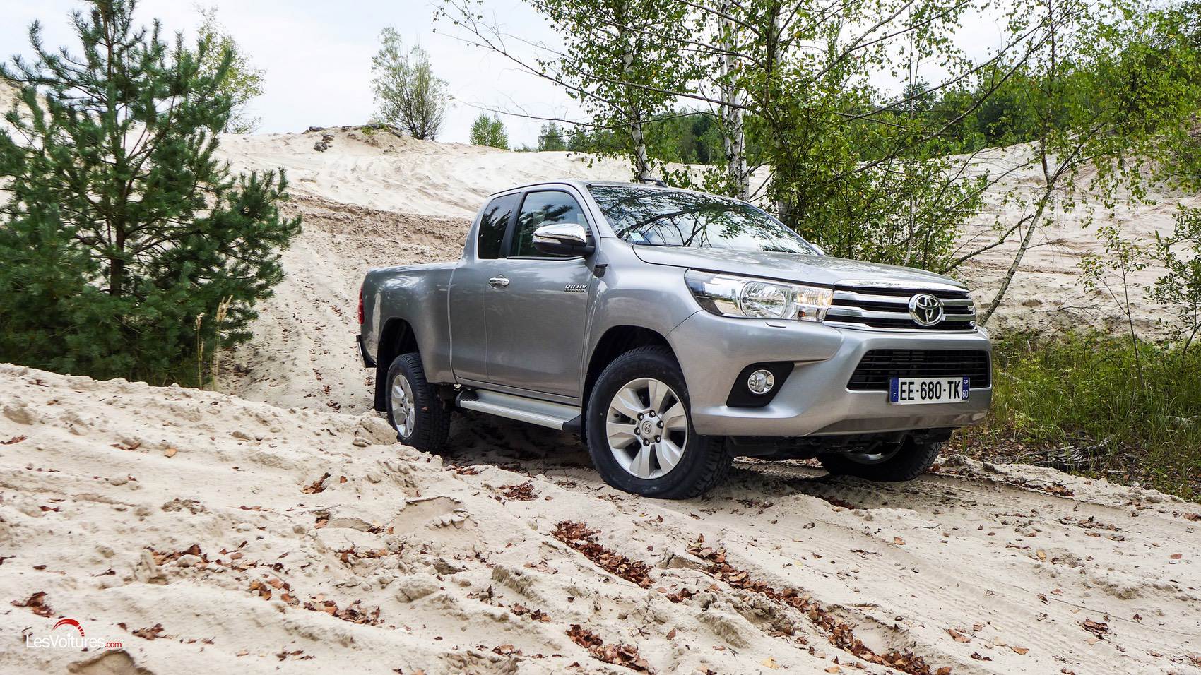 Quelques chiffres permettent de résumer la carrière de l’Hilux : 18 millions d’exemplaires vendus dans le monde. A une échelle plus récente et européenne, ce ne sont pas moins de 34 000 unités qui ont été livrées en 2015. Disponible en Simple Cabine pour les gros travaux, en Xtra Cabine pour un mix entre travail et loisirs et en Double Cabine pour une utilisation familiale, c’est dans cette dernière déclinaison 2.4L Diesel 150 ch boîte automatique finition Lounge que nous l’avons essayé.