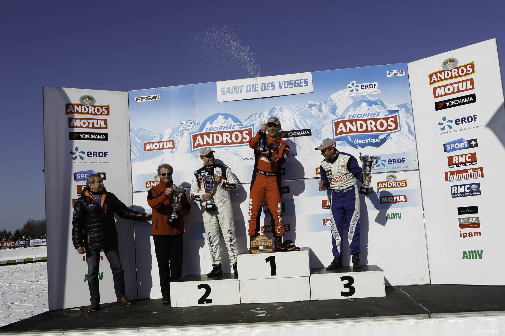 Quant à Jean-Philippe Dayraut, mal placé sur la grille de départ après le relais de son équipier J. Wolff, il plantait sa Mazda3 dans le mur de neige en tentant de dépasser à l’extérieur. Cela ne l’a pas empêché de soulever le trophée sur un beau podium final composé du Toulousain, d’Olivier Panis et de Franck Lagorce.