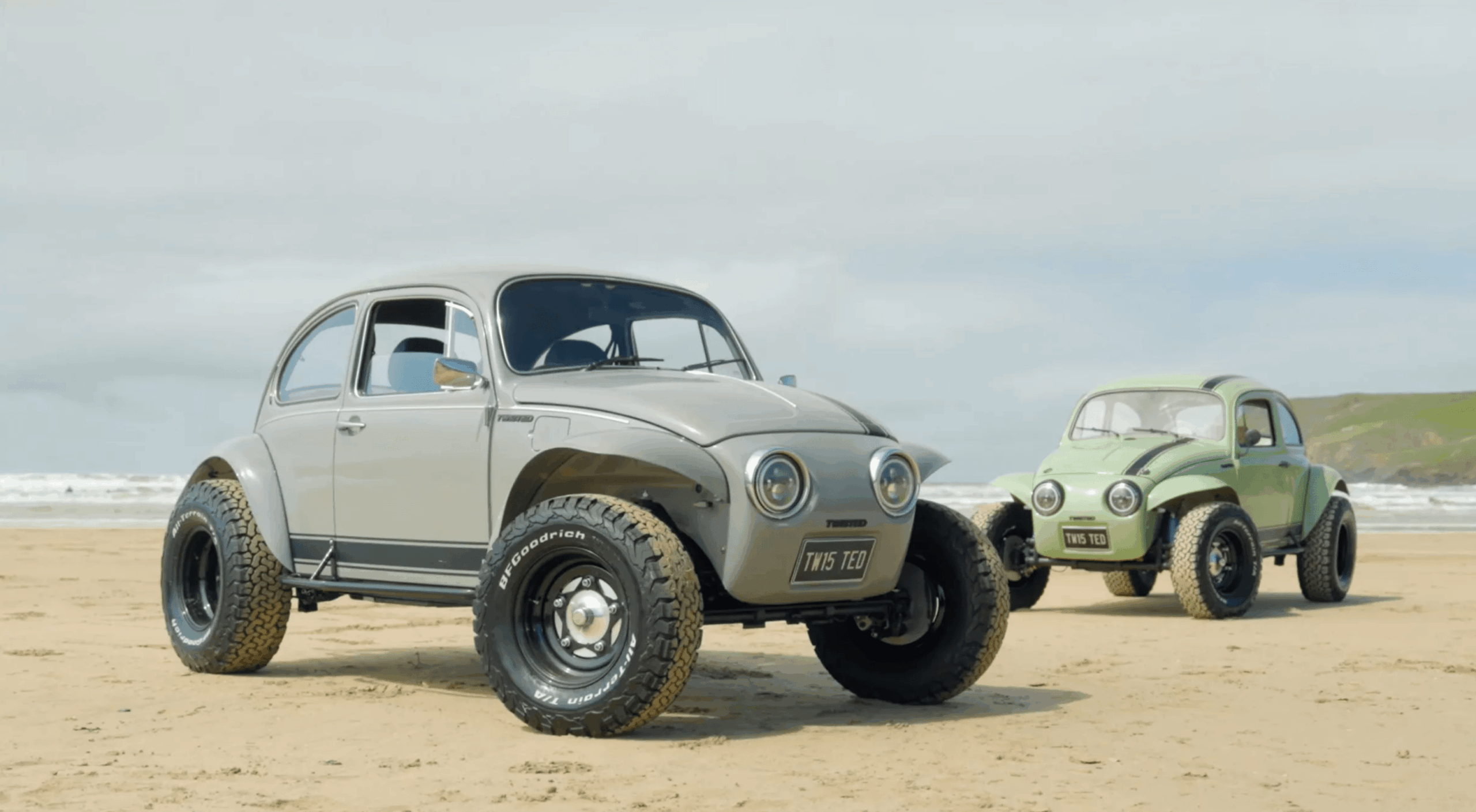 Passons à la motorisation du TBug. Twisted annonce avoir doublé la puissance du moteur boxer, bien que celle-ci reste modeste avec moins de 80 ch (79 PS). Parmi les autres modifications, on retrouve une suspension renforcée offrant une garde au sol logiquement améliorée, ainsi que des pneus BF Goodrich montés sur des énormes jantes. A ce titre, Twisted précise : « Chaque TBug est méticuleusement construit à partir du châssis. Nous scellons et renforçons la base, installons une suspension à grand débattement capable d’absorber les chocs, et enveloppons le tout dans une carrosserie inspirée du Baja, aussi fonctionnelle que distinctive. »