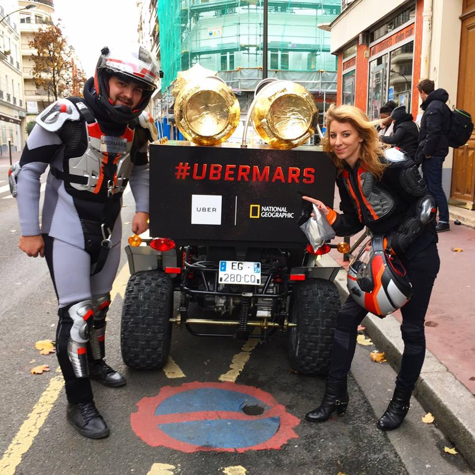 Alors que Thomas Pesquet est en route pour la station spatiale internationale ISS, Uber organise une autre opération spatiale mais sur « le plancher des vaches ». C’est à l’occasion de la diffusion de la série Mars sur National Geographic Channel que la société de VTC s’est associée à la chaîne de télévision. Le 18 novembre, un simple click sur l’option UberMARS, en validant votre course, vous fera embarquer dans le 1er véhicule martien Uber. L’équipement nécessaire au voyage dans l’espace vous sera remis ainsi qu’un kit de survie (eau, gâteaux). Votre astronaute Uber pourra être commandé de 12h00 à 20h00 dans Paris intra-muros. Quant à la série Mars, réalisée par Ron Howard, le 1er des 6 épisodes sera diffusé le dimanche 20 novembre à 20h40. Découvrez ci-dessous la vidéo UberMARS et le trailer de la série.