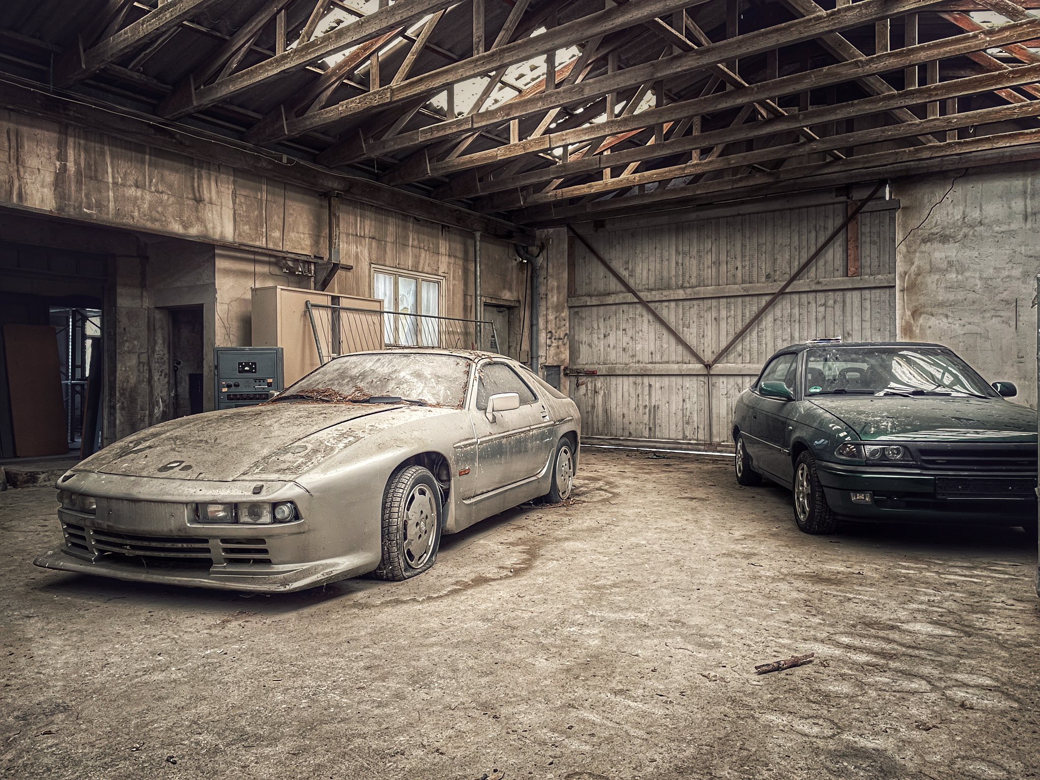 Sous la lumière blafarde filtrant à travers les tôles percées, des silhouettes familières émergent de ce site urbex. Une Mercedes‑Benz encore fière malgré la rouille qui la ronge. Une BMW dont la peinture, étonnamment intacte, semble défier l’abandon. Une Audi figée dans un sommeil profond, comme si elle attendait encore la clé qui ne viendra jamais. Plus loin, une Mazda MX‑5, frêle et vulnérable, disparaît sous un manteau de poussière. Difficile de dénombrer le nombre voitures abandonnées de « The Mafia Garage ».