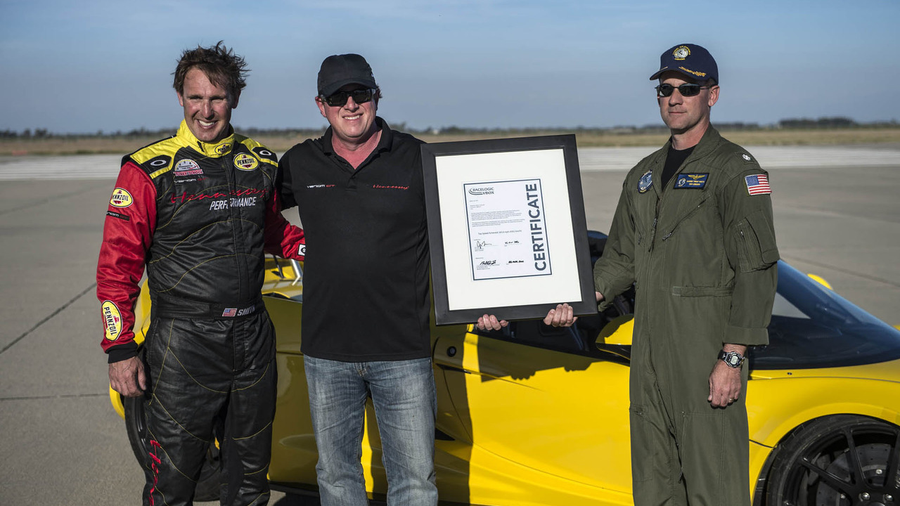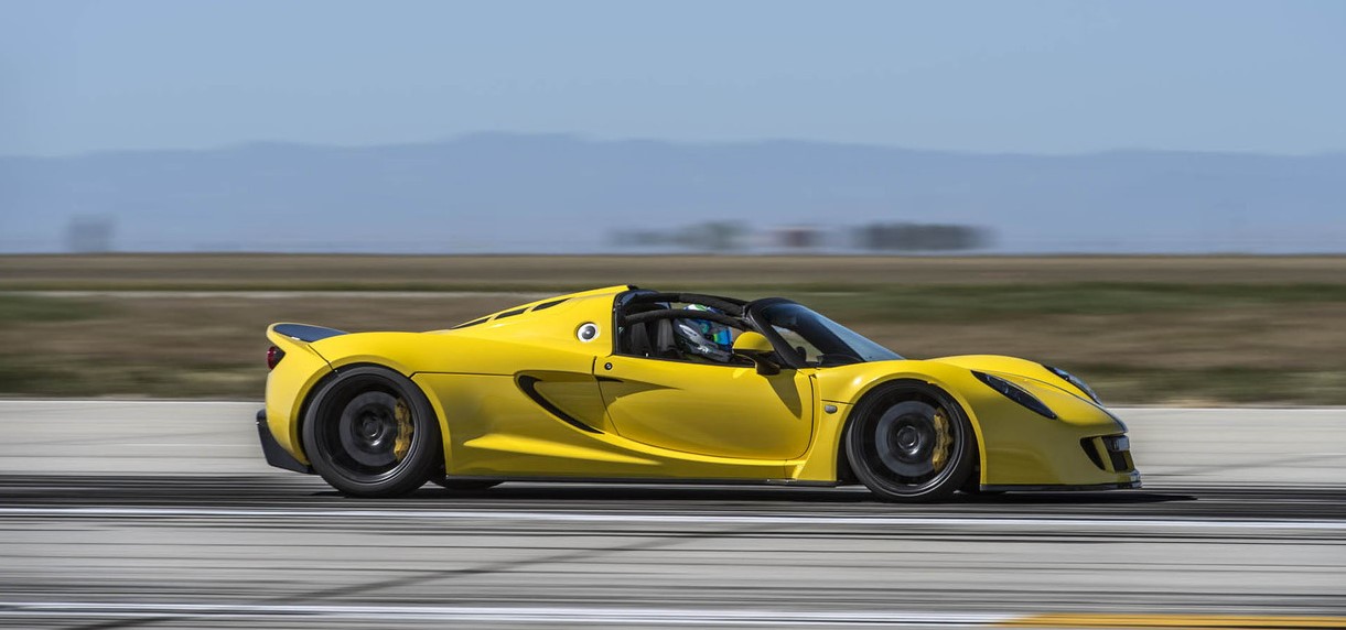 Les Texans de chez Hennessey Performance ont encore frappé. Le préparateur américain a battu le record de vitesse réalisé en 2013 par la Bugatti Veyron Grand Sport Vitesse. Dans la catégorie des cabriolets les plus rapides au monde, la Venom GT Spyder colle plus de 18 km/h à la Bugatti en atteigant 265,6 mph. La Venom GT Spyder développe, grâce à son V8 7.0 l, une puissance phénoménale de 1 451 chevaux pour un couple de 1 287 Nm. Après la vidéo, retrouvez, ci-dessous, les photos du record qui a été réalisé sur la piste de la NASA de Lemoore (Californie) le 11 avril dernier.