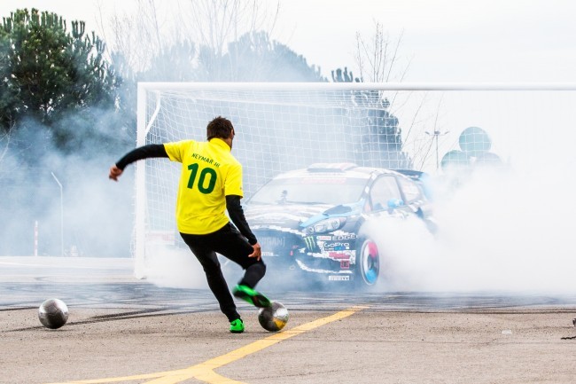 La Coupe du Monde de Football 2014 approche à grand pas et suscite beaucoup d’attente car c’est le pays du ballon rond qui accueillera cet événement planétaire, du 12 juin au 13 juillet 2014. La société Castrol, spécialisée en lubrifiants pour moteur, a réuni la star brésilienne Neymar Jr. et Ken Block pour un défi insolite où football et chevaux mécaniques font le spectacle. Voici : « Castrol Footkhana: Neymar Jr. v Ken Block ».