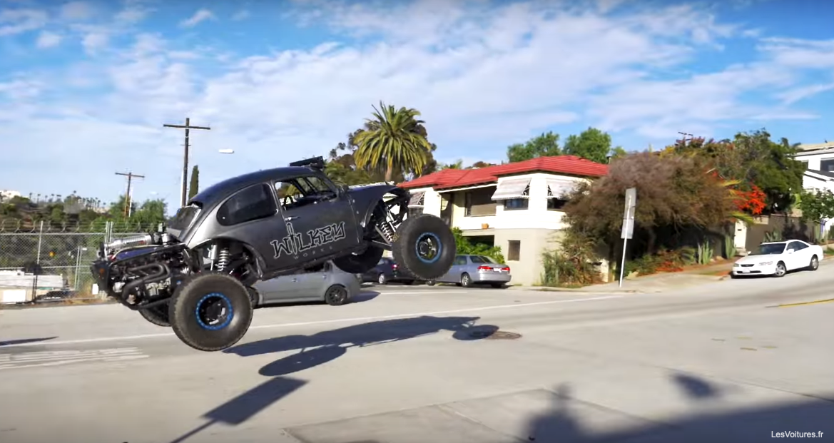 Le pilote Blake Wilkey est depuis cette vidéo recherché par la police de San Diego pour conduite dangereuse et ces mots sont faibles… Au volant de son monstre de 800 ch motorisé par le moteur LS d’origine General Motors, un buggy qui reprend les formes de la Volkswagen Coccinelle, cet américain totalement inconscient a ignoré toutes les règles de Sécurité routière lors du tournage sur routes ouvertes de « URBAN ASSAULT: San Diego Shark Attack ».