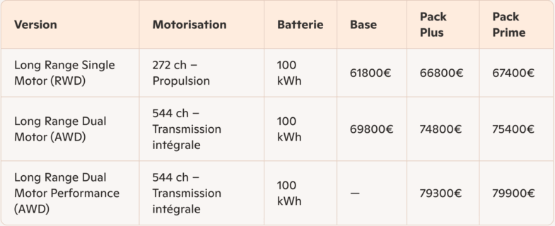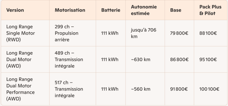 Gamme Polestar 3 – Tarifs France (juin 2025) :