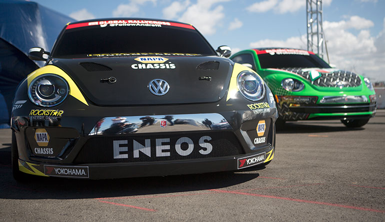 Ainsi, Scott Speed et Tanner Foust prendront les commandes de cette Beetle de l’extrême en remplacement des actuelles Polo RX Supercars. Engagées par Andretti Autosport, les deux « Choupette » développent chacune 544 chevaux ( TSI 1,6 litres quatre cylindres optimisé).