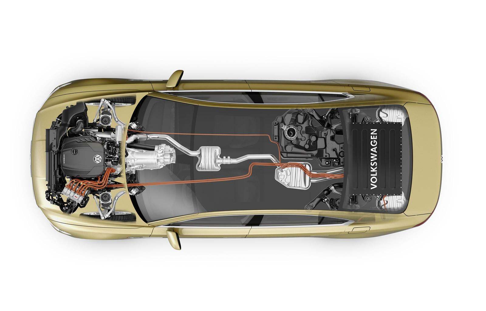 Sous son capot, place à une motorisation hybride rechargeable. Un bloc essence TSI classique à quatre cylindres turbocompressé développe 210 chevaux. Il est accompagné par un moteur électrique. Au total 245 chevaux et 500 Nm de couple sont disponibles. En mode 100% électrique, le Volkswagen C Coupé GTE Concept peut parcourir 50 kilomètres. Du coté des consommations, Volkswagen avance 2,3 l/100 km et 55 g/km d’émissions de CO2. Le C Coupé GTE abat le e 0 à 100 km/h en 8,6 secondes pour une vitesse maximale de 232 km/h. Mais en mode électrique, la vitesse maximale est de 130 km/h.
