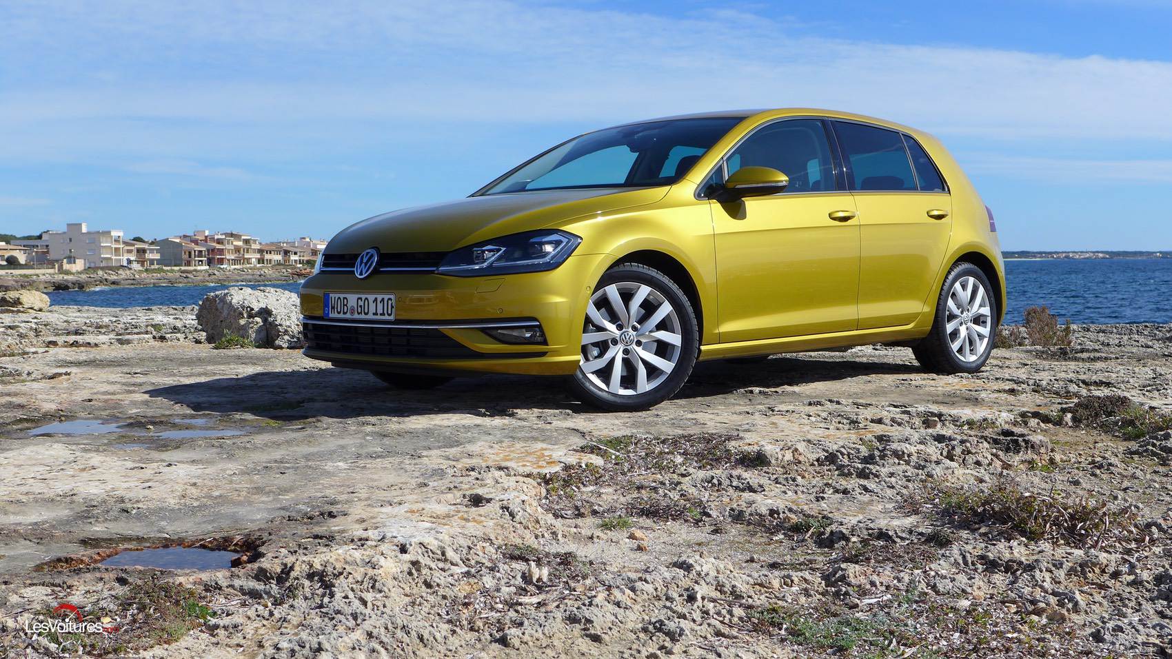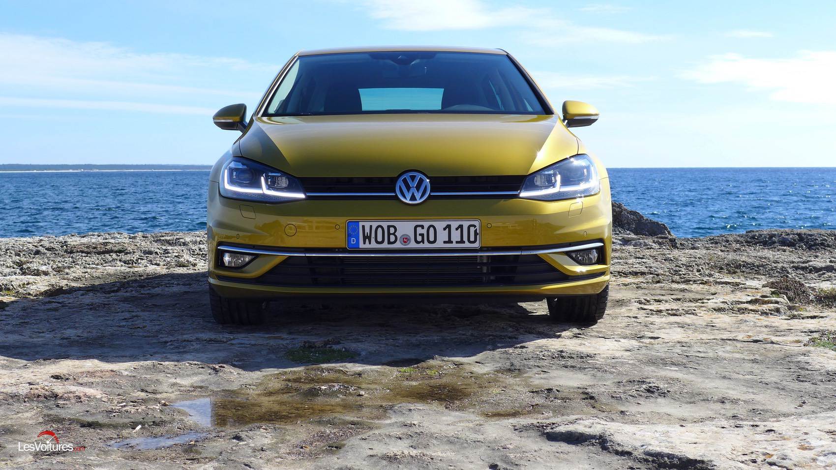 De nouvelles jantes sont aussi au programme. Elles sont accompagnées par la nouvelle teinte Jaune Curcuma (option : 800 €). Cette dernière met un peu de fun au catalogue de la compacte. La génération qui a connu Les Mystérieuses Cités d’Or peut désormais s’offrir une Golf à la couleur digne de celle du Grand Condor ! C’est celle de notre Golf d’essai : 2.0 TDI BlueMotion Technology BVM6.