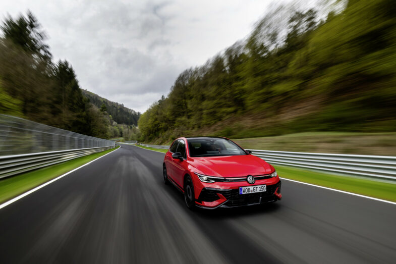Comme nous l’avons relayé il y a quelques jours déjà, c’est sur l’exigeant tracé du Nürburgring, soit la Nordschleife (Boucle Nord), que la Volkswagen Golf GTI Edition 50 a signé sa première démonstration de force. Ainsi, sous les mains expertes du pilote et ambassadeur maison Benjamin Leuchter, elle a couvert les 20,832 km du circuit en 07:46:13. Ce chrono fait d’elle la Volkswagen de série la plus rapide jamais enregistrée sur le Nürburgring, devançant même la Golf R “20 Years” (7:47:31), pourtant équipée de la transmission intégrale.